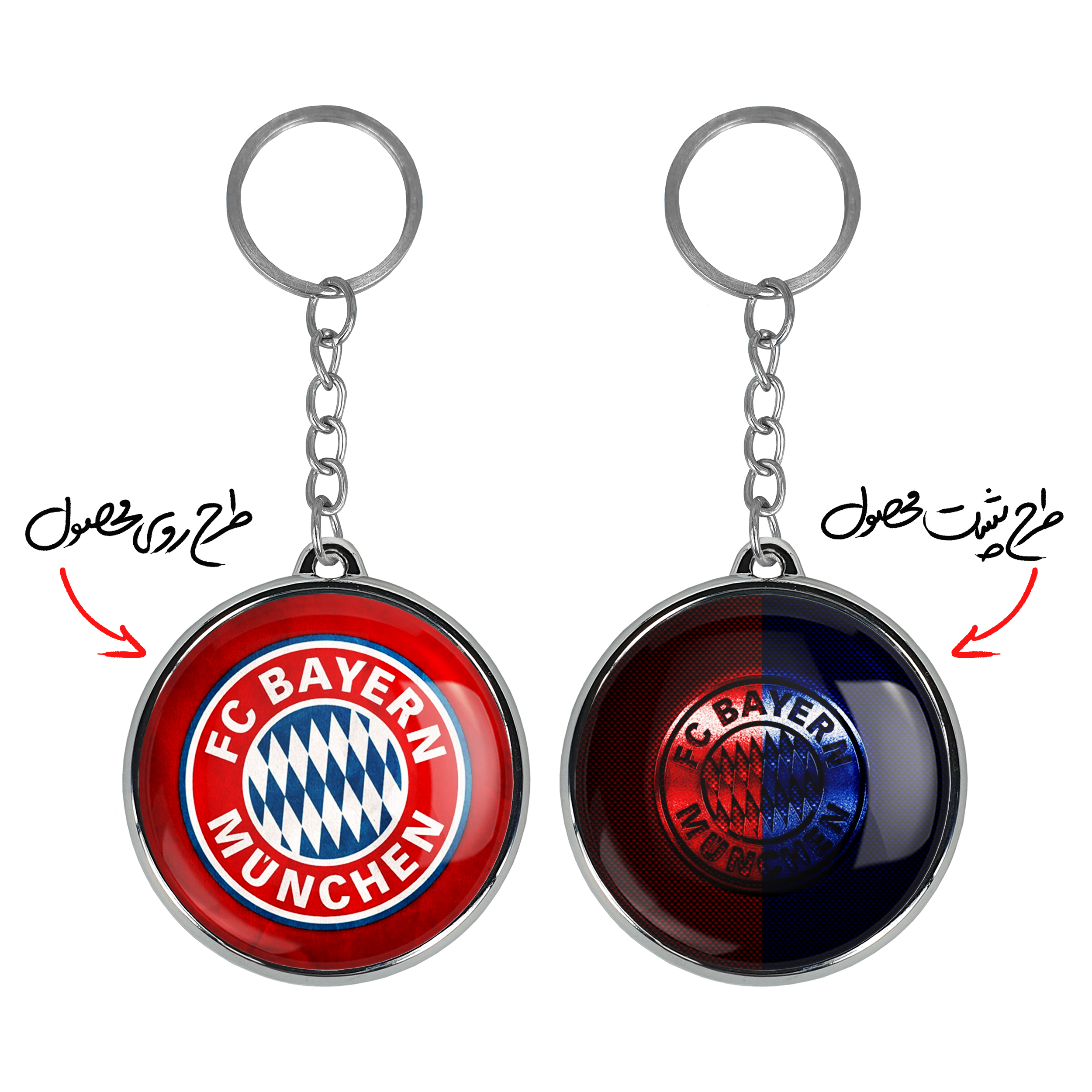 جاکلیدی دوطرفه باشگاه بایرن مونیخخندالو محصولی کاربردی و جدید است که در هر دو سمت محصول، تصویری متفاوت اما از یک موضوع چاپ شده و تفاوت اصلی آن با جاکلیدی های یک طرفه در همین است که هر دو سمت پشت و روی جاکلیدی، طرحی دیدنی و جذاب دارد.