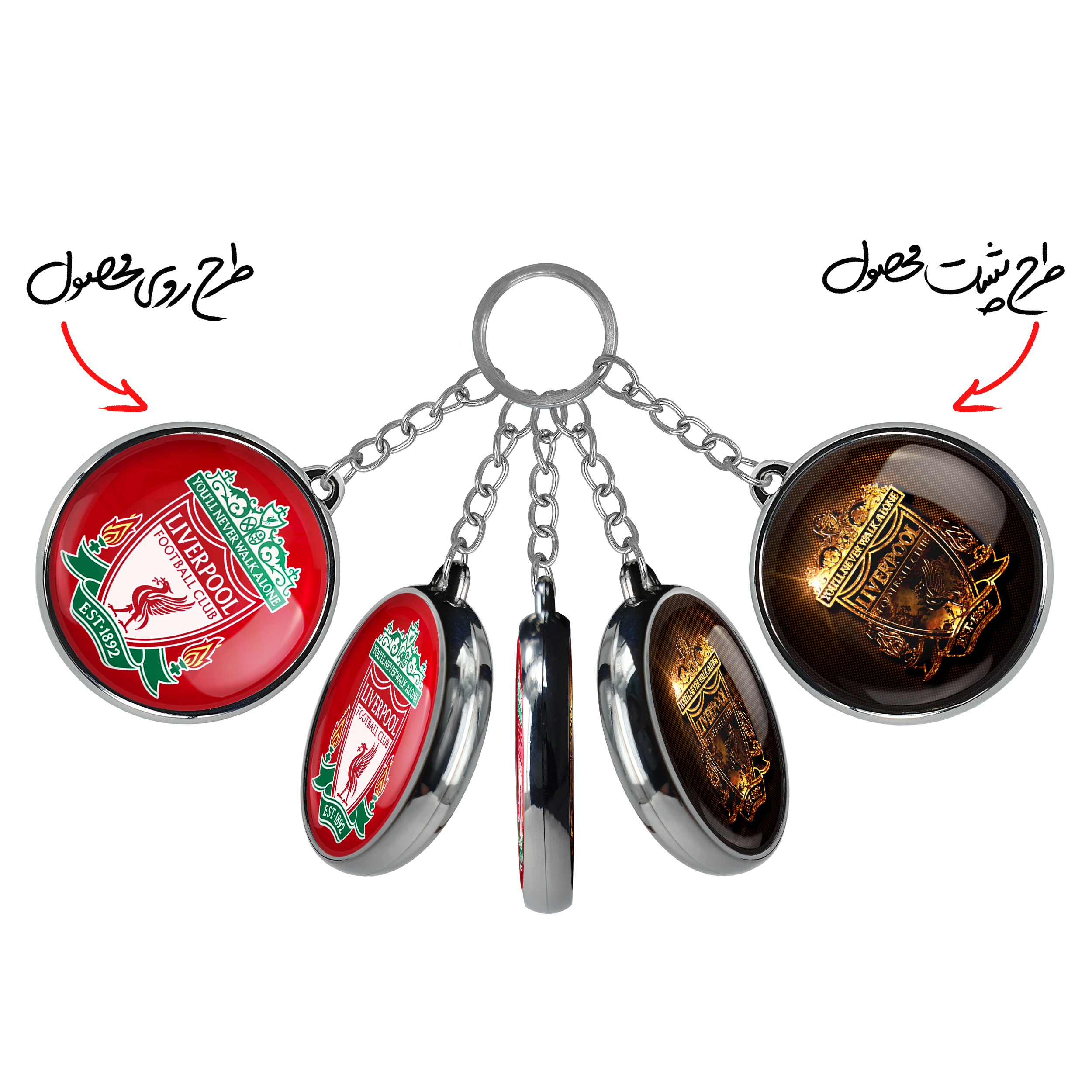 جاکلیدی دوطرفه باشگاه لیورپولخندالو محصولی کاربردی و جدید است که در هر دو سمت محصول، تصویری متفاوت اما از یک موضوع چاپ شده و تفاوت اصلی آن با جاکلیدی های یک طرفه در همین است که هر دو سمت پشت و روی جاکلیدی، طرحی دیدنی و جذاب دارد.