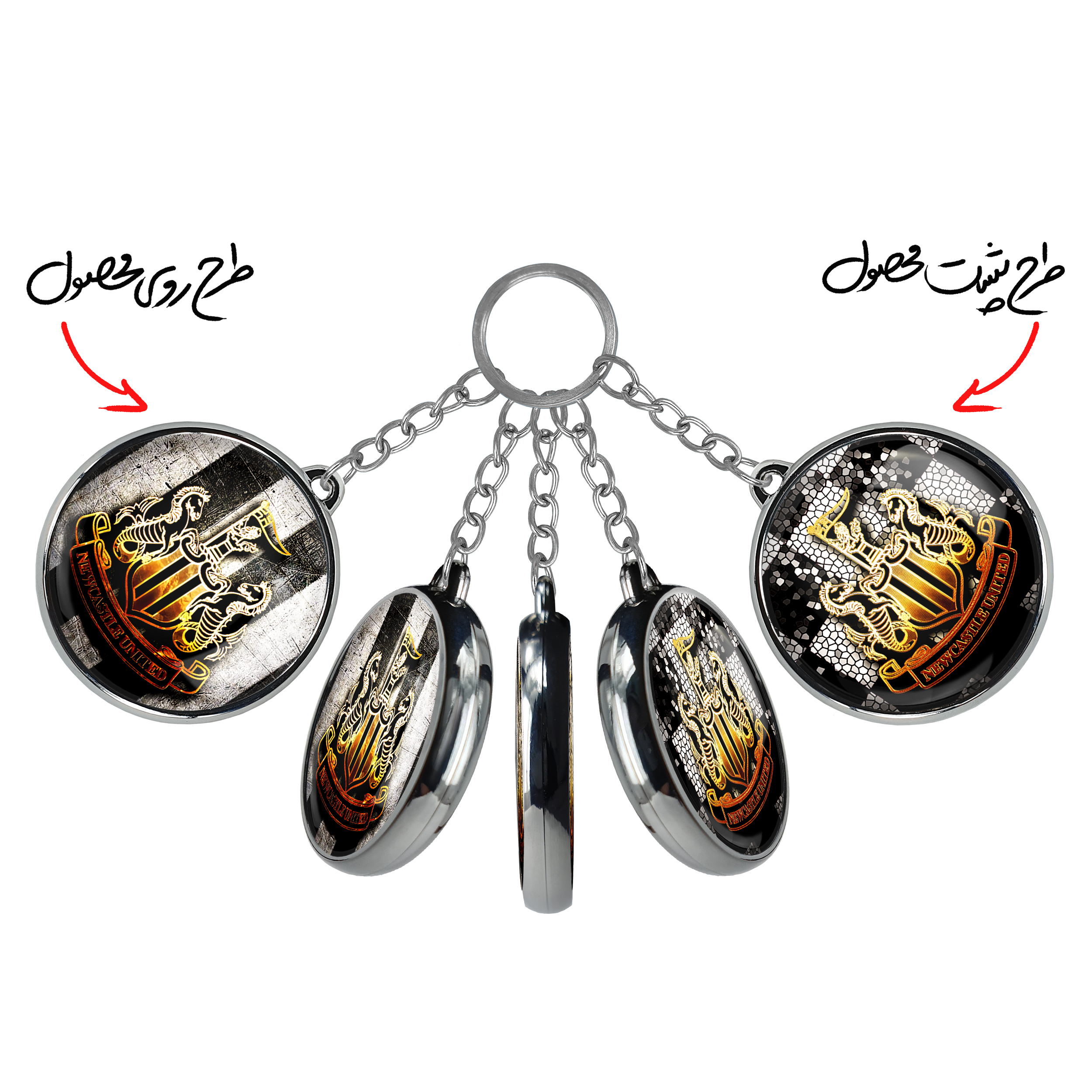 جاکلیدی دوطرفه باشگاه نیوکاسلخندالو محصولی کاربردی و جدید است که در هر دو سمت محصول، تصویری متفاوت اما از یک موضوع چاپ شده و تفاوت اصلی آن با جاکلیدی های یک طرفه در همین است که هر دو سمت پشت و روی جاکلیدی، طرحی دیدنی و جذاب دارد.