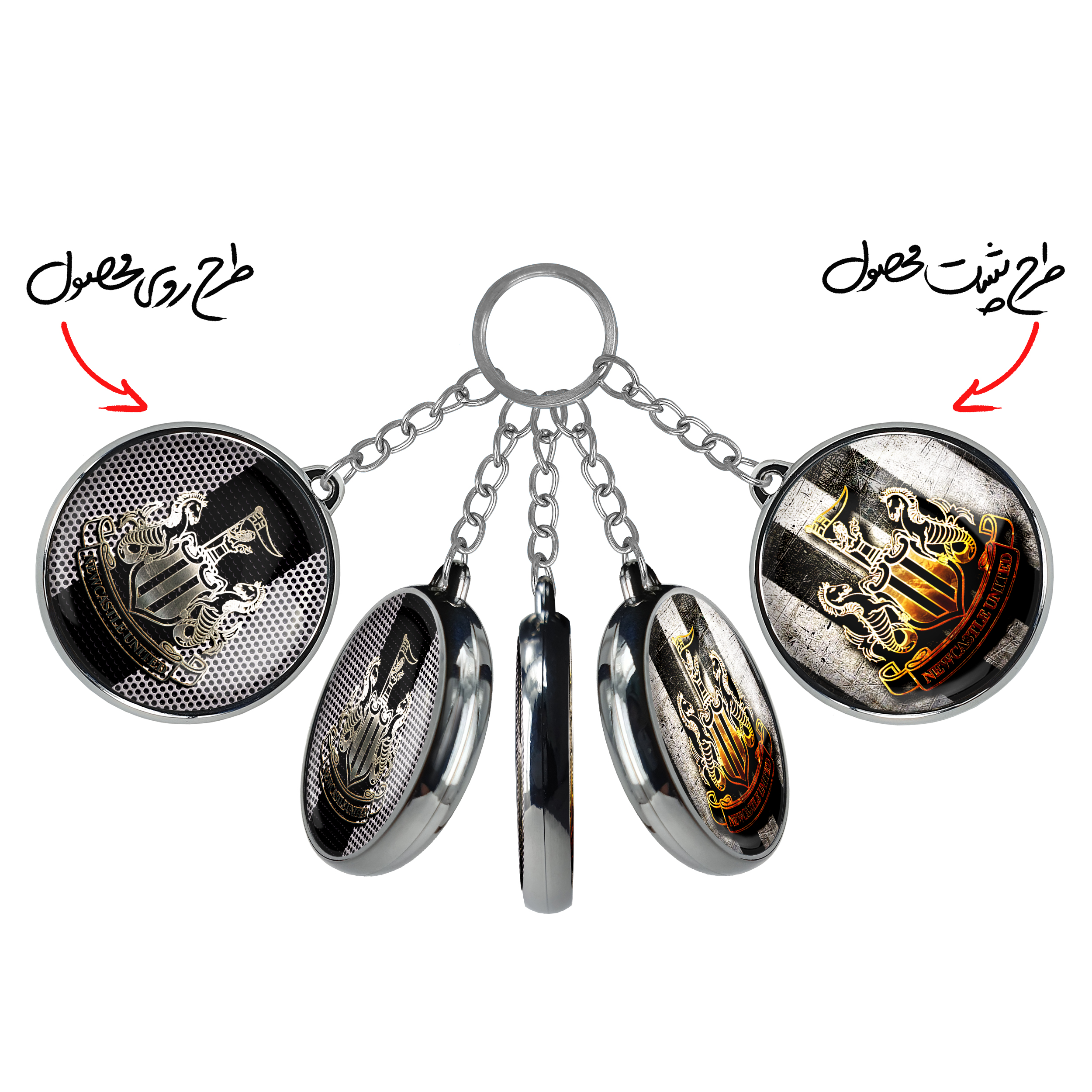جاکلیدی دوطرفه باشگاه نیوکاسلخندالو محصولی کاربردی و جدید است که در هر دو سمت محصول، تصویری متفاوت اما از یک موضوع چاپ شده و تفاوت اصلی آن با جاکلیدی های یک طرفه در همین است که هر دو سمت پشت و روی جاکلیدی، طرحی دیدنی و جذاب دارد.