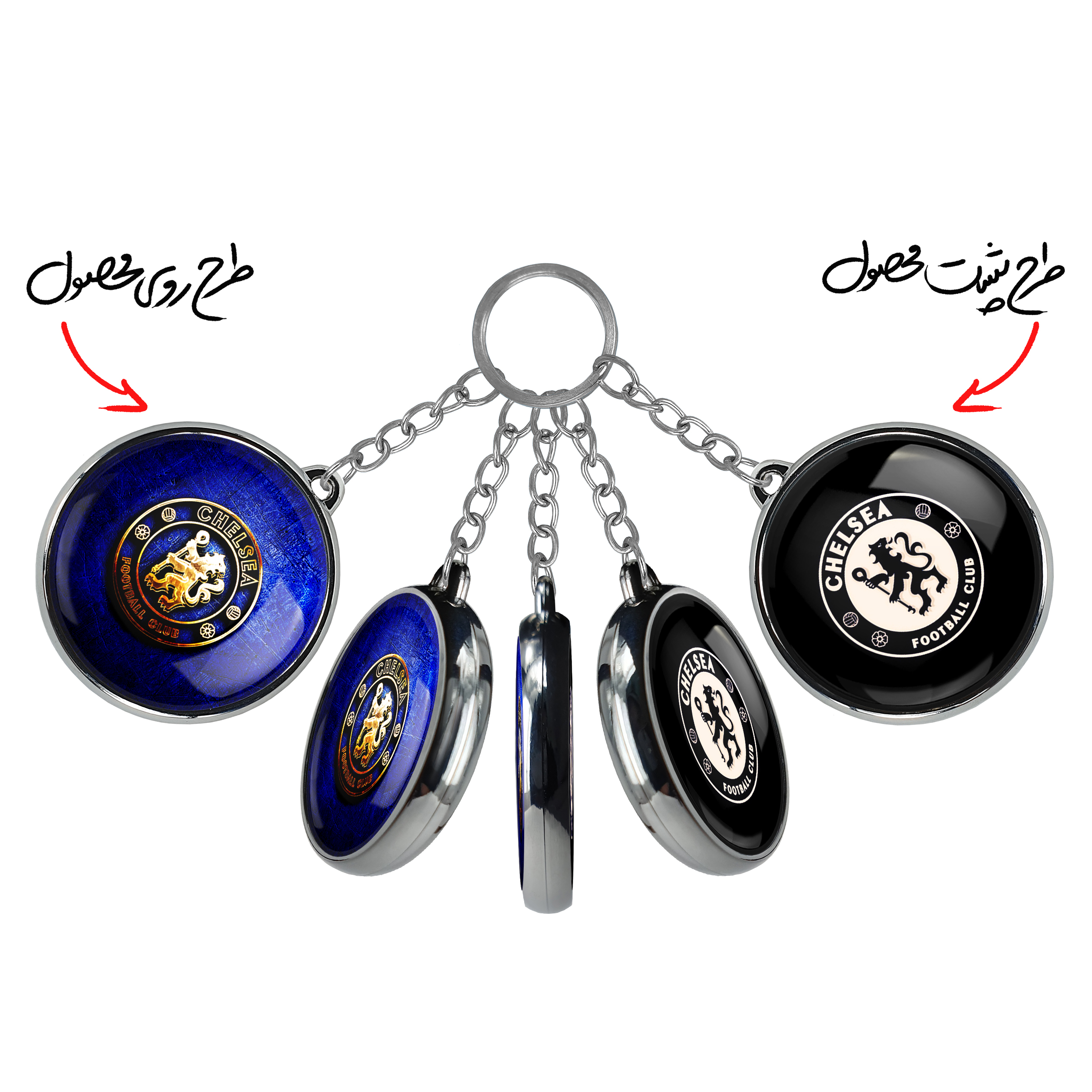 جاکلیدی دوطرفه باشگاه چلسیخندالو محصولی کاربردی و جدید است که در هر دو سمت محصول، تصویری متفاوت اما از یک موضوع چاپ شده و تفاوت اصلی آن با جاکلیدی های یک طرفه در همین است که هر دو سمت پشت و روی جاکلیدی، طرحی دیدنی و جذاب دارد.