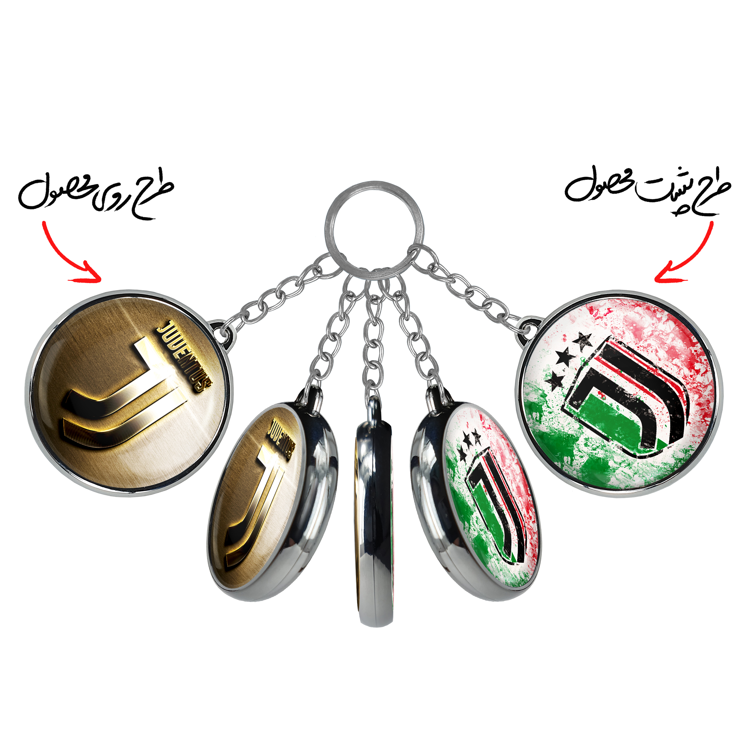 جاکلیدی دوطرفه باشگاه یوونتوسخندالو محصولی کاربردی و جدید است که در هر دو سمت محصول، تصویری متفاوت اما از یک موضوع چاپ شده و تفاوت اصلی آن با جاکلیدی های یک طرفه در همین است که هر دو سمت پشت و روی جاکلیدی، طرحی دیدنی و جذاب دارد.