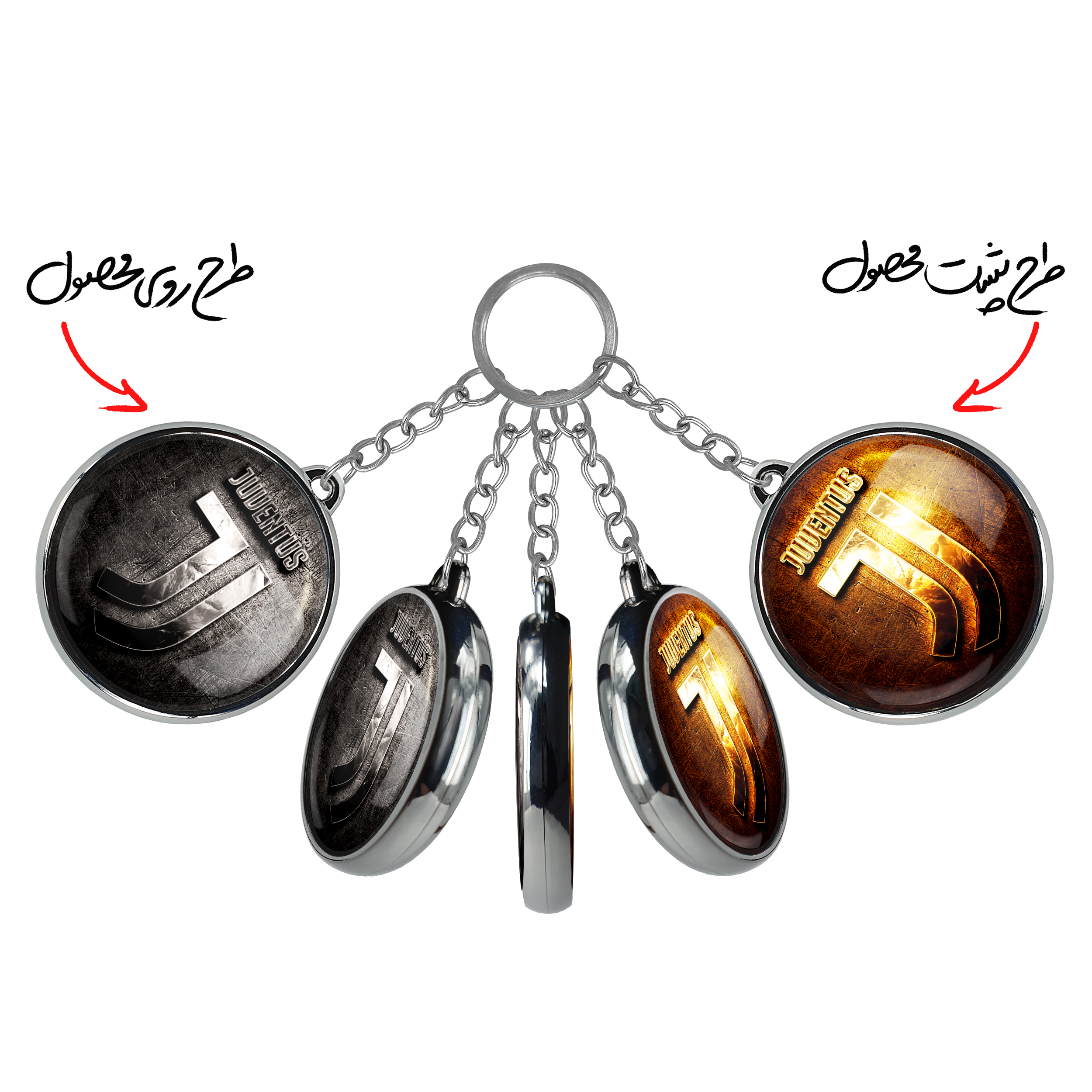 جاکلیدی دوطرفه باشگاه یوونتوسخندالو محصولی کاربردی و جدید است که در هر دو سمت محصول، تصویری متفاوت اما از یک موضوع چاپ شده و تفاوت اصلی آن با جاکلیدی های یک طرفه در همین است که هر دو سمت پشت و روی جاکلیدی، طرحی دیدنی و جذاب دارد.