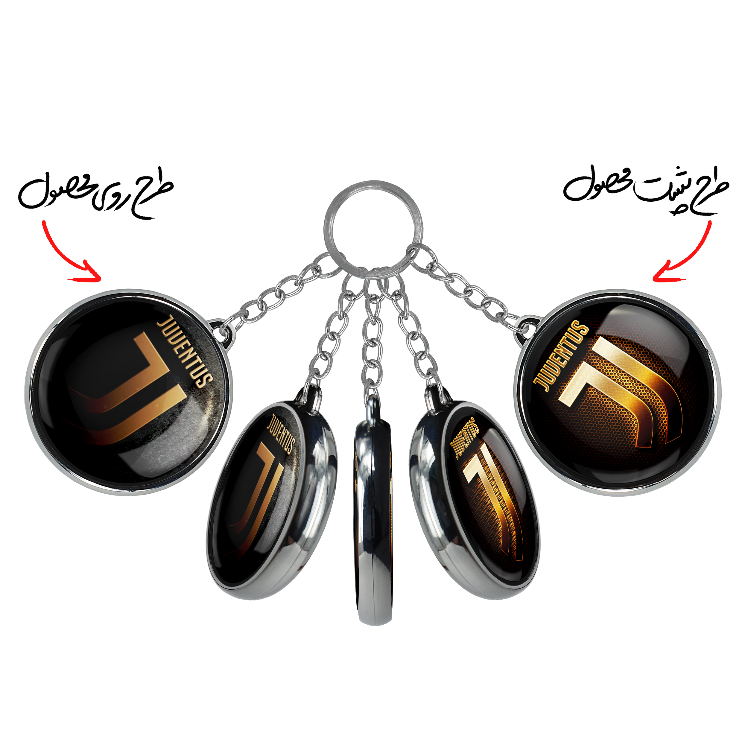 جاکلیدی دوطرفه باشگاه یوونتوسخندالو محصولی کاربردی و جدید است که در هر دو سمت محصول، تصویری متفاوت اما از یک موضوع چاپ شده و تفاوت اصلی آن با جاکلیدی های یک طرفه در همین است که هر دو سمت پشت و روی جاکلیدی، طرحی دیدنی و جذاب دارد.