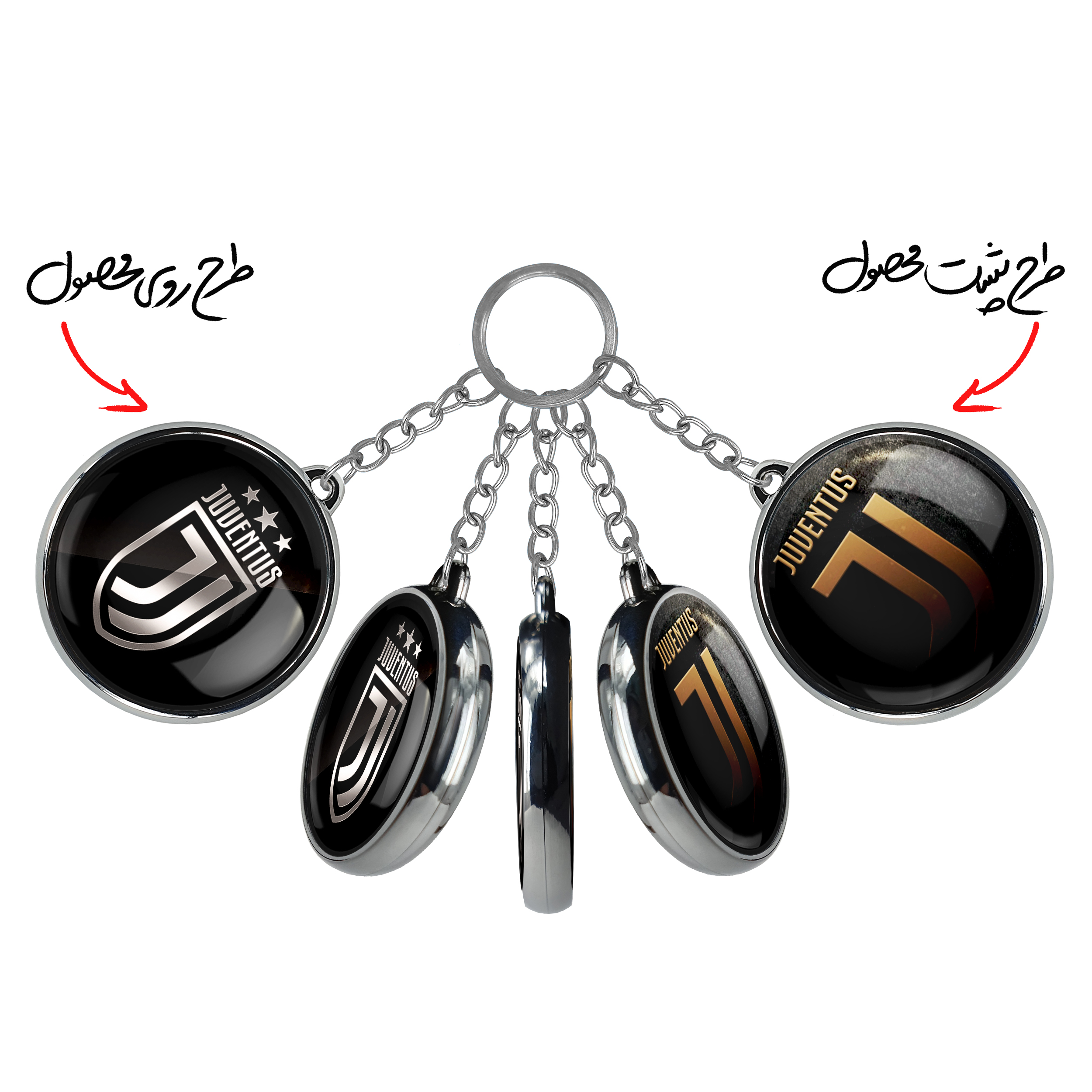 جاکلیدی دوطرفه باشگاه یوونتوسخندالو محصولی کاربردی و جدید است که در هر دو سمت محصول، تصویری متفاوت اما از یک موضوع چاپ شده و تفاوت اصلی آن با جاکلیدی های یک طرفه در همین است که هر دو سمت پشت و روی جاکلیدی، طرحی دیدنی و جذاب دارد.