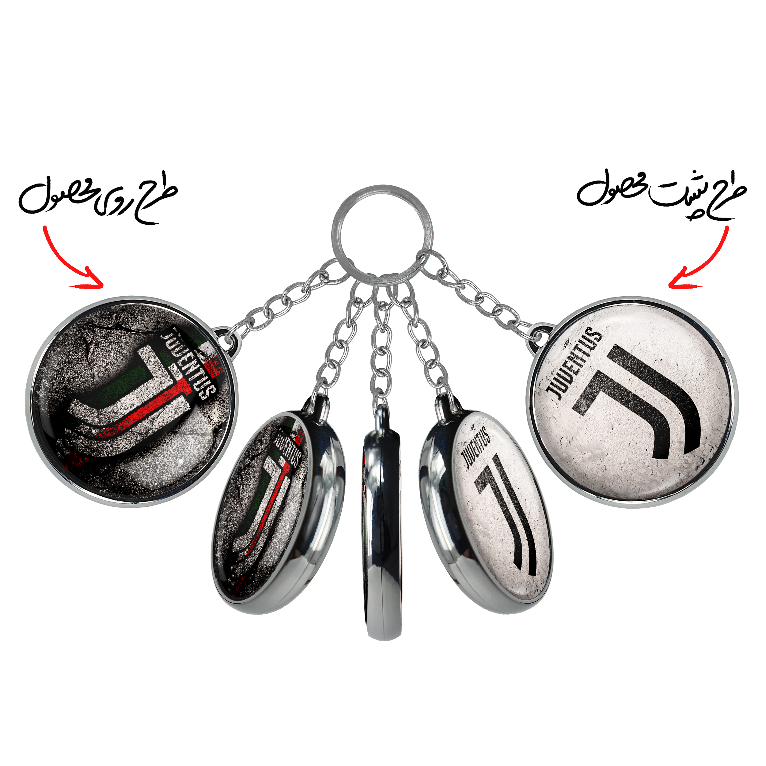 جاکلیدی دوطرفه باشگاه یوونتوسخندالو محصولی کاربردی و جدید است که در هر دو سمت محصول، تصویری متفاوت اما از یک موضوع چاپ شده و تفاوت اصلی آن با جاکلیدی های یک طرفه در همین است که هر دو سمت پشت و روی جاکلیدی، طرحی دیدنی و جذاب دارد.