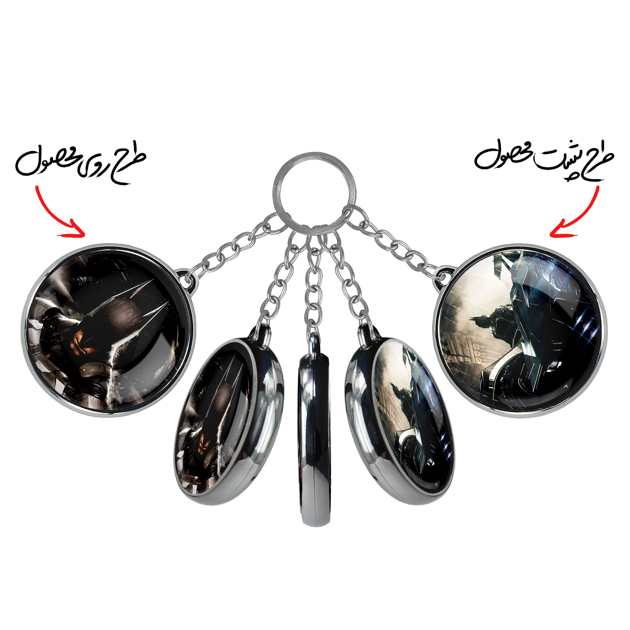جاکلیدی دوطرفه بتمن شوالیه آرخام Batman Arkham knightخندالو محصولی کاربردی و جدید است که در هر دو سمت محصول، تصویری متفاوت اما از یک موضوع چاپ شده و تفاوت اصلی آن با جاکلیدی های یک طرفه در همین است که هر دو سمت پشت و روی جاکلیدی، طرحی دیدنی و جذاب دارد.