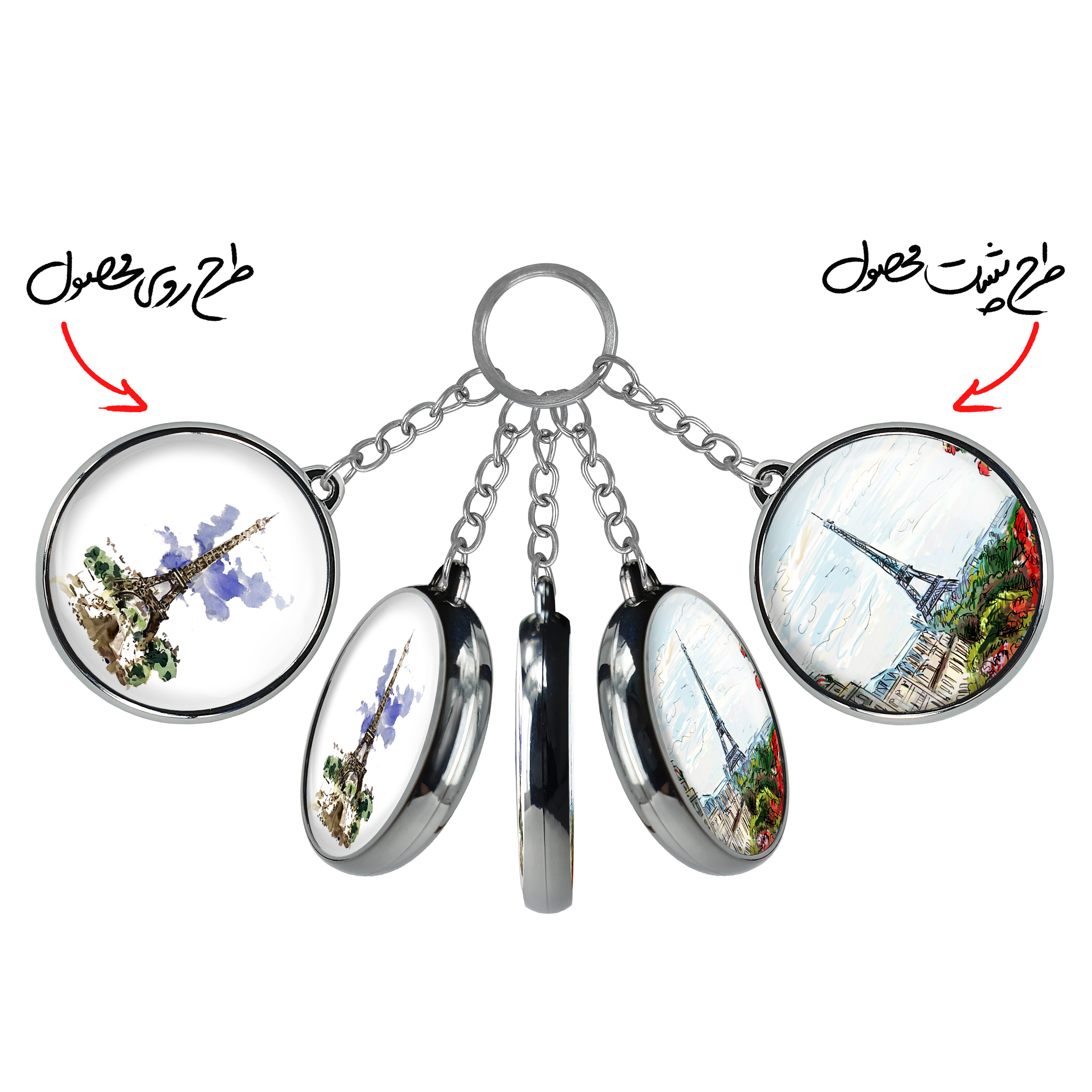 جاکلیدی دوطرفه برج ایفل خندالو محصولی کاربردی و جدید است که در هر دو سمت محصول، تصویری متفاوت اما از یک موضوع چاپ شده و تفاوت اصلی آن با جاکلیدی های یک طرفه در همین است که هر دو سمت پشت و روی جاکلیدی، طرحی دیدنی و جذاب دارد.