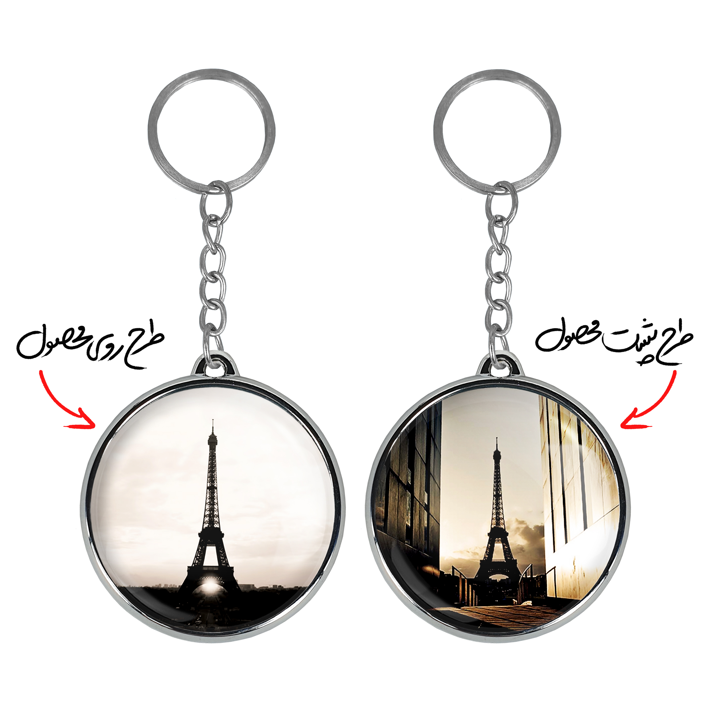 جاکلیدی دوطرفه برج ایفل خندالو محصولی کاربردی و جدید است که در هر دو سمت محصول، تصویری متفاوت اما از یک موضوع چاپ شده و تفاوت اصلی آن با جاکلیدی های یک طرفه در همین است که هر دو سمت پشت و روی جاکلیدی، طرحی دیدنی و جذاب دارد.