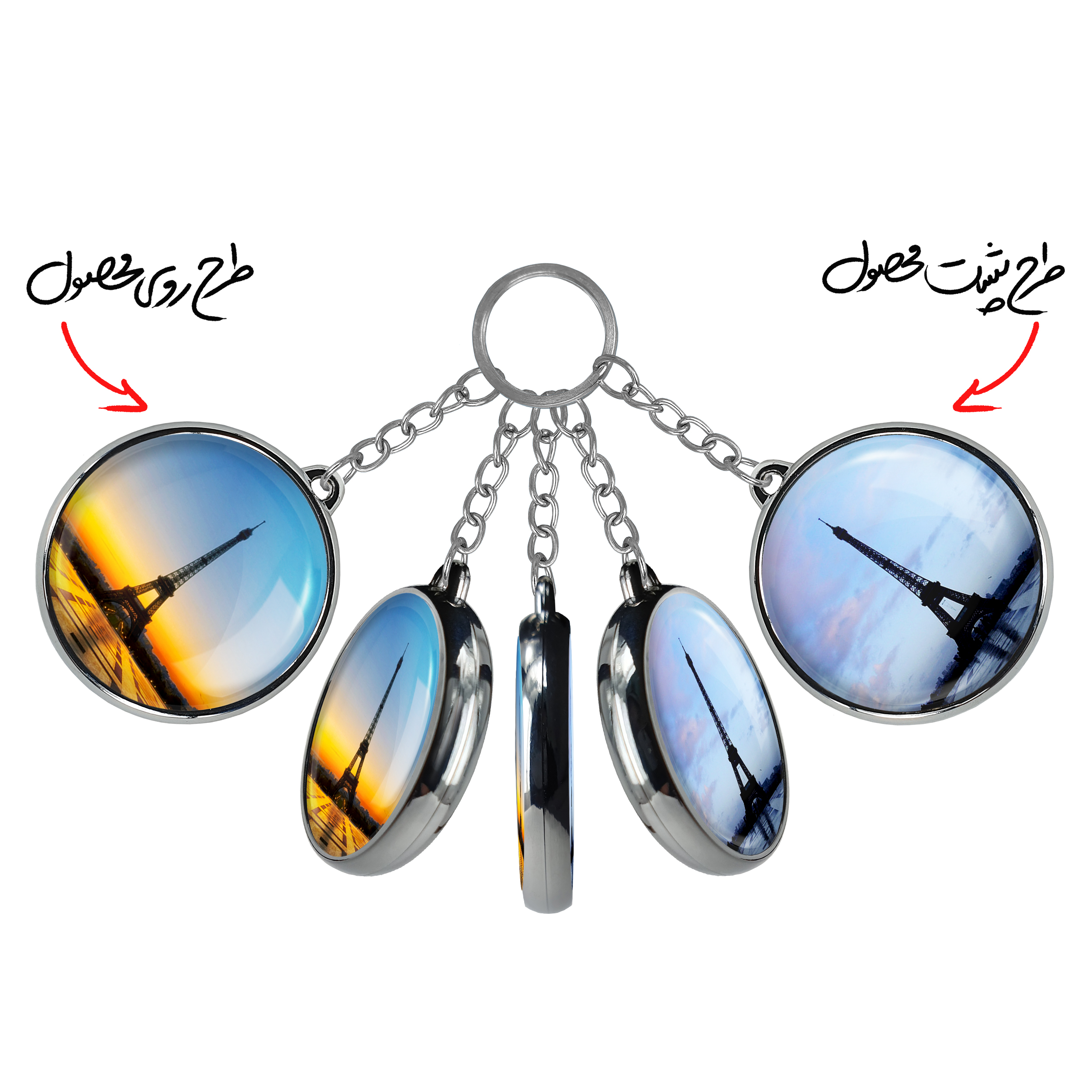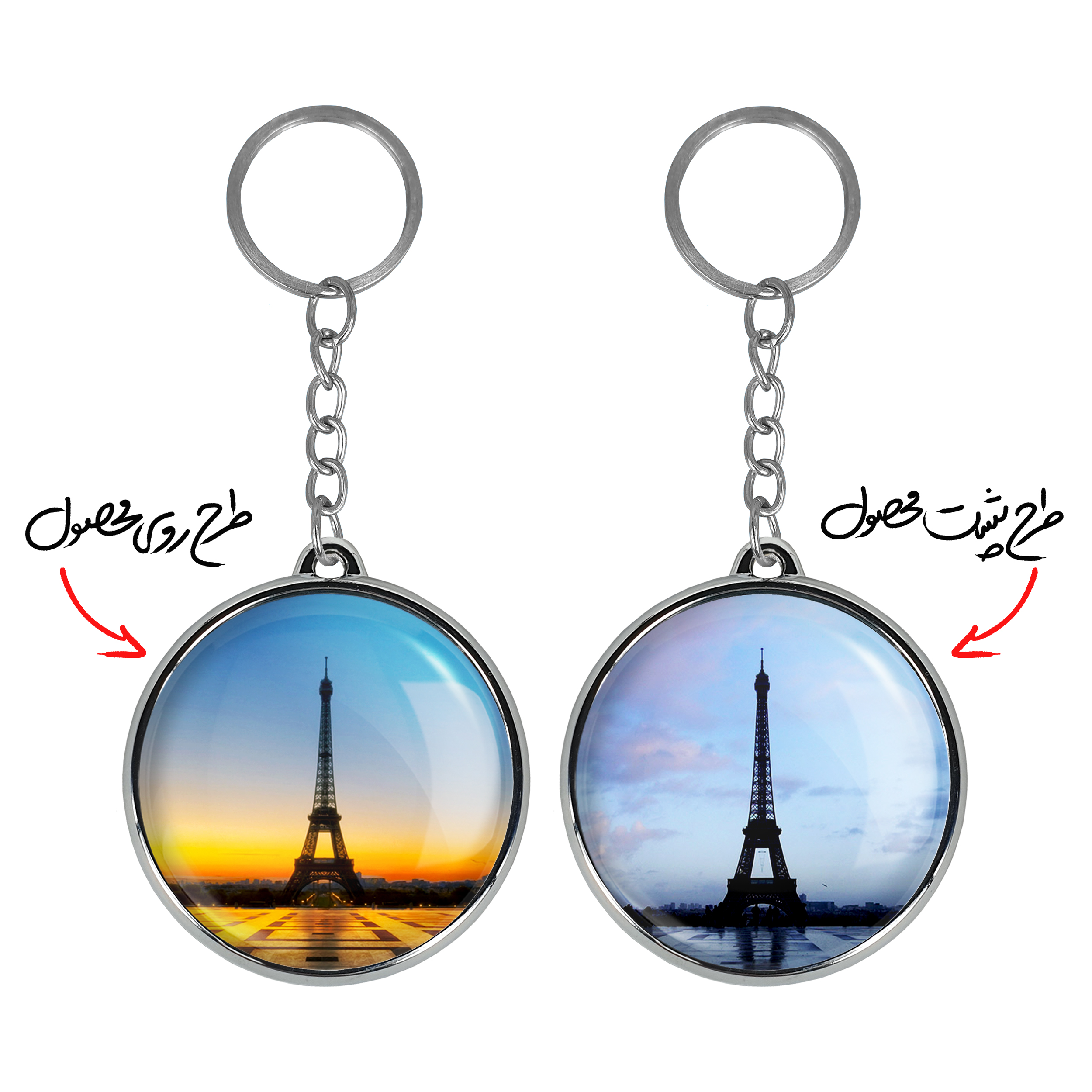جاکلیدی دوطرفه برج ایفل خندالو محصولی کاربردی و جدید است که در هر دو سمت محصول، تصویری متفاوت اما از یک موضوع چاپ شده و تفاوت اصلی آن با جاکلیدی های یک طرفه در همین است که هر دو سمت پشت و روی جاکلیدی، طرحی دیدنی و جذاب دارد.