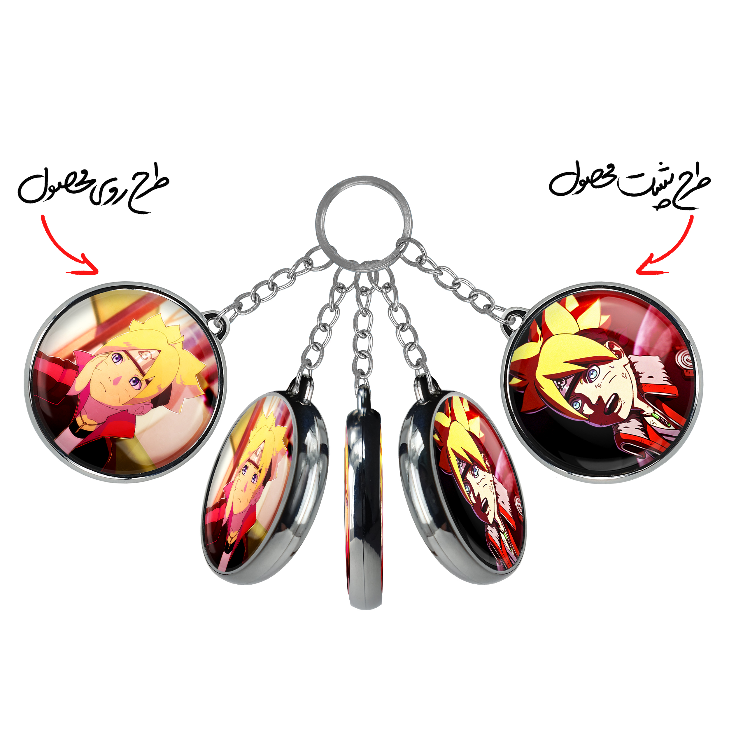 جاکلیدی دوطرفه بوروتو اوزوماکی انیمه بوروتو Boruto خندالو محصولی کاربردی و جدید است که در هر دو سمت محصول، تصویری متفاوت اما از یک موضوع چاپ شده و تفاوت اصلی آن با جاکلیدی های یک طرفه در همین است که هر دو سمت پشت و روی جاکلیدی، طرحی دیدنی و جذاب دارد.