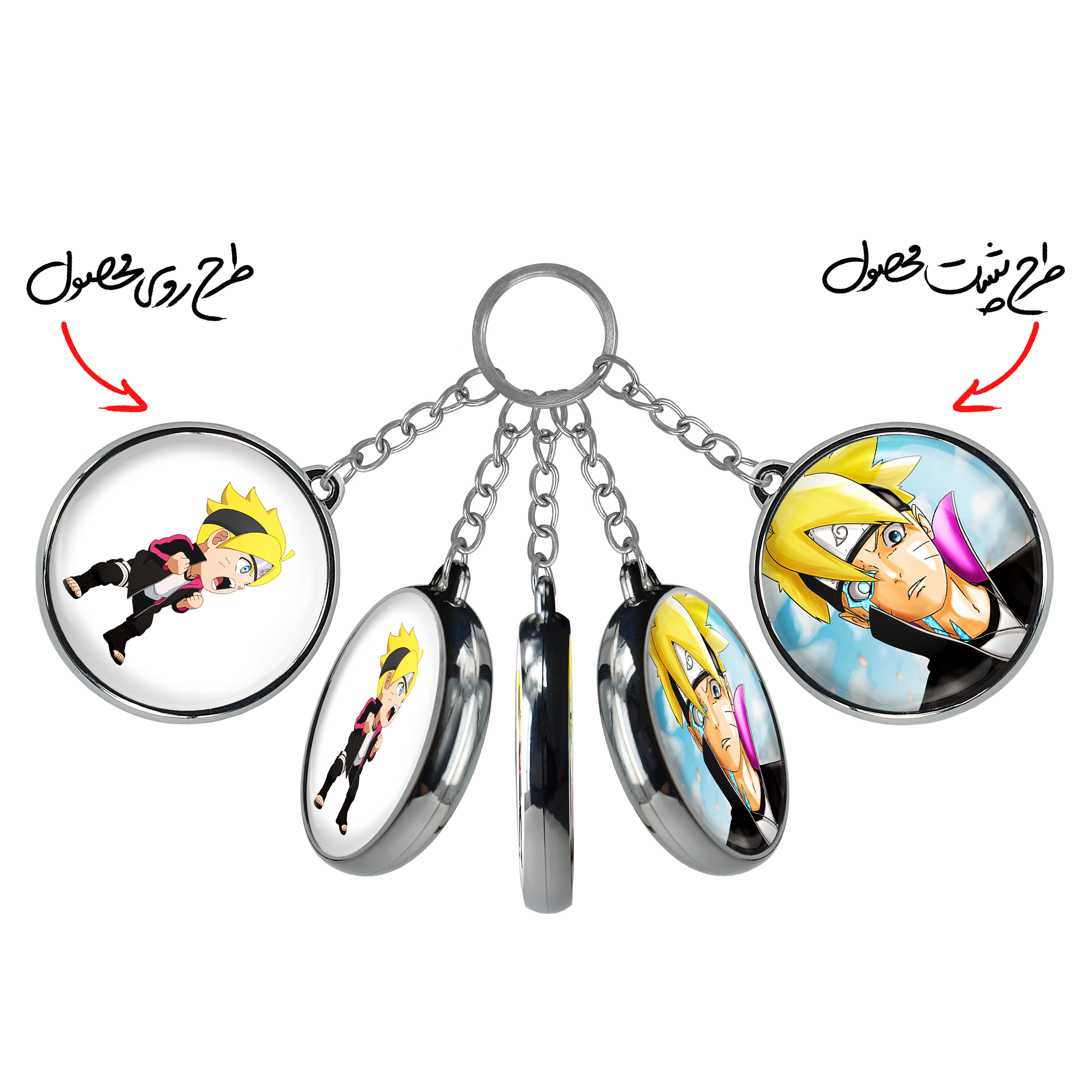 جاکلیدی دوطرفه بوروتو اوزوماکی انیمه بوروتو Boruto خندالو محصولی کاربردی و جدید است که در هر دو سمت محصول، تصویری متفاوت اما از یک موضوع چاپ شده و تفاوت اصلی آن با جاکلیدی های یک طرفه در همین است که هر دو سمت پشت و روی جاکلیدی، طرحی دیدنی و جذاب دارد.