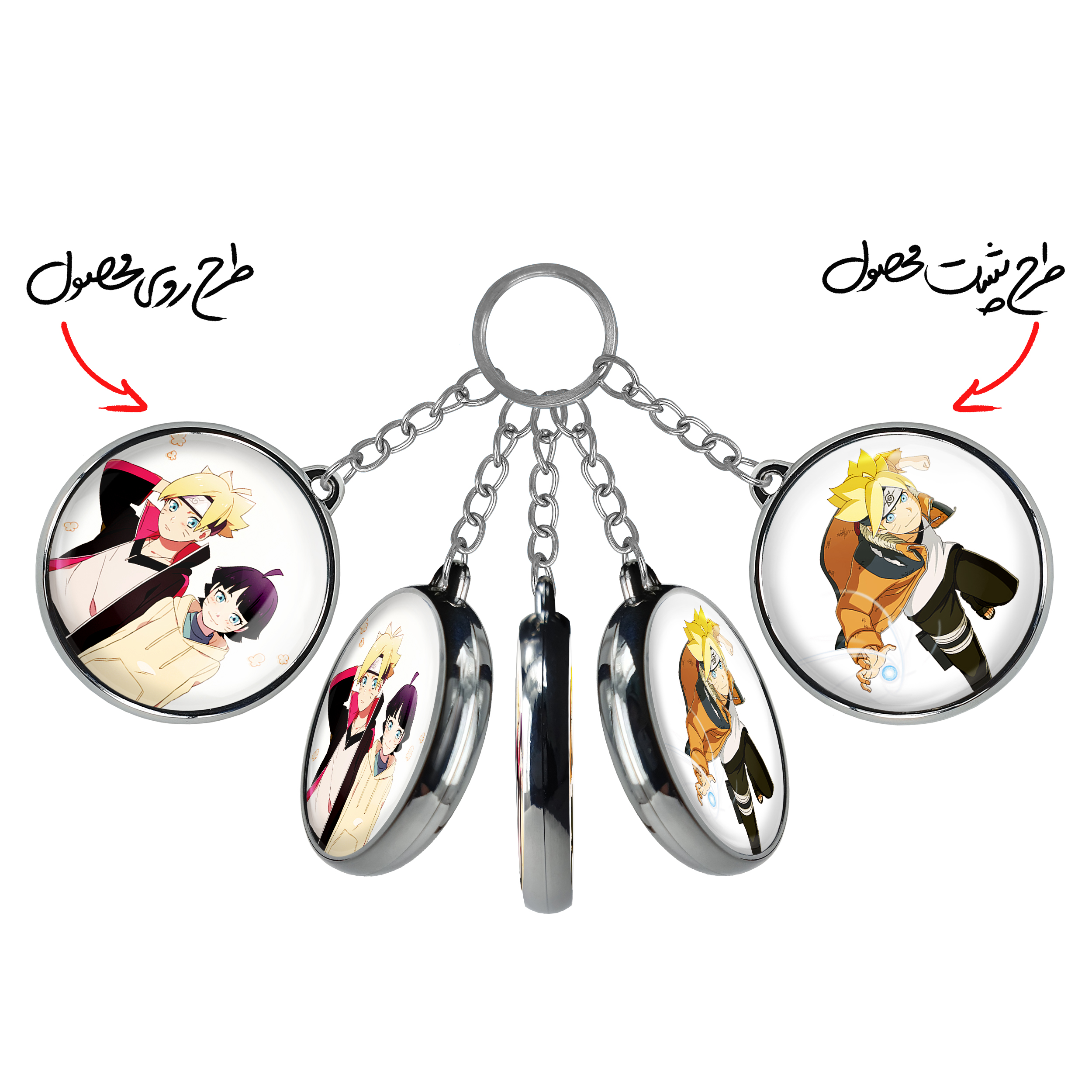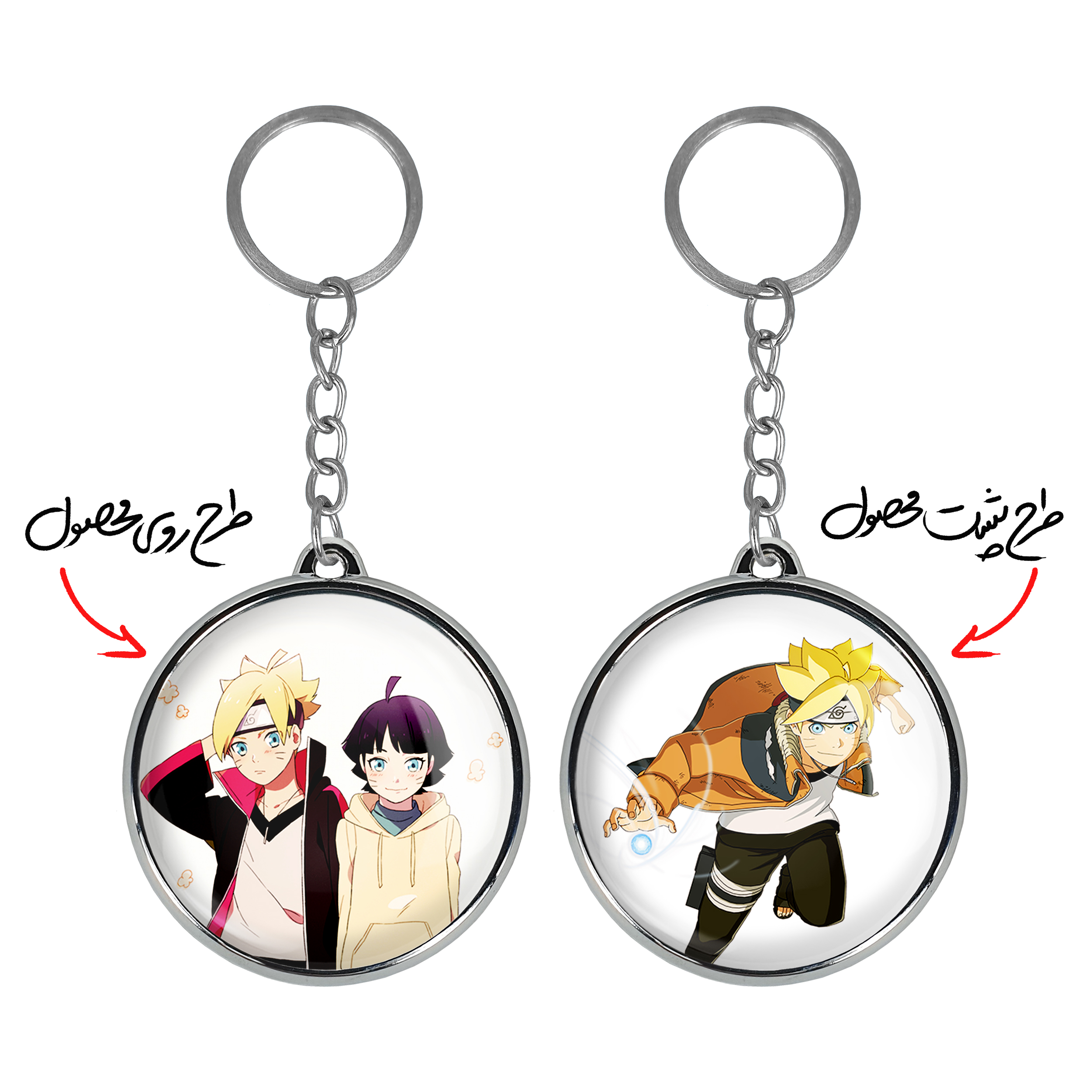 جاکلیدی دوطرفه بوروتو و هیماواری اوزوماکی انیمه بوروتو Boruto خندالو محصولی کاربردی و جدید است که در هر دو سمت محصول، تصویری متفاوت اما از یک موضوع چاپ شده و تفاوت اصلی آن با جاکلیدی های یک طرفه در همین است که هر دو سمت پشت و روی جاکلیدی، طرحی دیدنی و جذاب دارد. همچنین رینگ بکار برده شده برای دور طرح ها آبکاری کروم درجه یک و رنگ ثابت است و برخلاف سایر محصولات مشابه، از رنگ های متفرقه و یا سفید استفاده نشده، که این مهم، زیبایی محصول نهایی را چند برابر کرده است. جاکلیدی های دوطرفه بوروتو و هیماواری اوزوماکی انیمه بوروتو Boruto با استفاده از روکش سلفون براق ضدخش تولید شده که خاصیت ضدخش بودن آن عمر مفید استفاده از جاکلیدی ها را افزایش میدهد. چاپ جاکلیدی ها با دستگاه های استاندارد و با بهترین سطح کیفیت صورت گرفته و طرح با شفافیتی مثال زدنی و با سلفون چسبی تولید شده است که باعث شده محصول نهایی بدون شکست نور دیده شود. همچنین بسته بندی جذاب و مینیمال جاکلیدی دوطرفه بوروتو و هیماواری اوزوماکی انیمه بوروتو Boruto ، آنها را محصولی مناسب هدیه کرده است. زنجیر و حلقه بکار برده شده در جاکلیدی خندالو از نوع حلقه ضخیم و محکم بوده و حین استفاده آسیب نمی بیند.