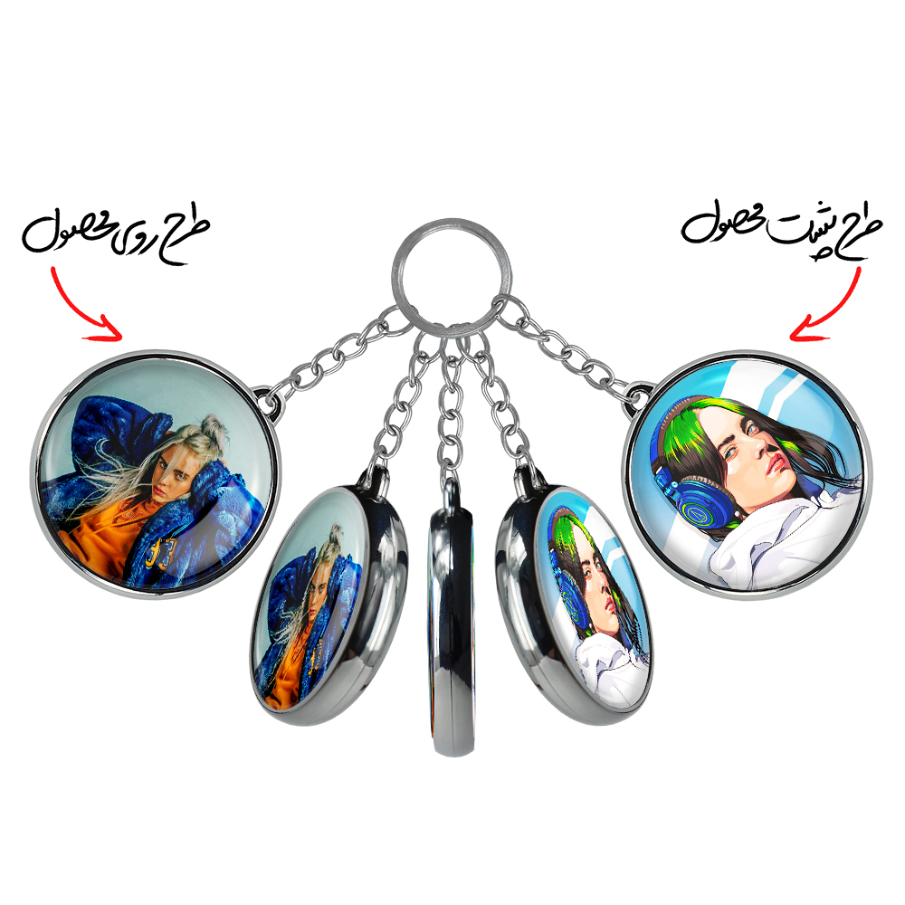 جاکلیدی دوطرفه بیلی آیلیش Billie Eilish خندالو محصولی کاربردی و جدید است که در هر دو سمت محصول، تصویری متفاوت اما از یک موضوع چاپ شده و تفاوت اصلی آن با جاکلیدی های یک طرفه در همین است که هر دو سمت پشت و روی جاکلیدی، طرحی دیدنی و جذاب دارد.