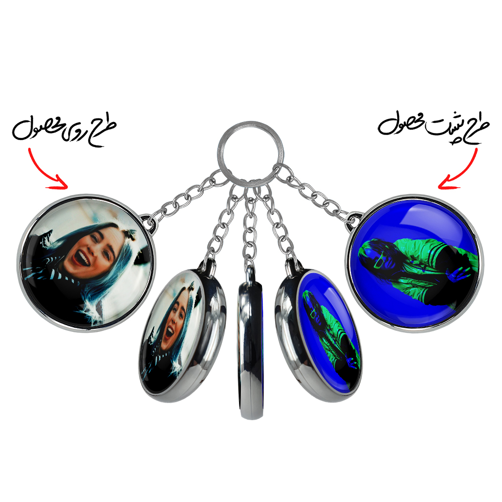 جاکلیدی دوطرفه بیلی آیلیش Billie Eilish خندالو محصولی کاربردی و جدید است که در هر دو سمت محصول، تصویری متفاوت اما از یک موضوع چاپ شده و تفاوت اصلی آن با جاکلیدی های یک طرفه در همین است که هر دو سمت پشت و روی جاکلیدی، طرحی دیدنی و جذاب دارد.