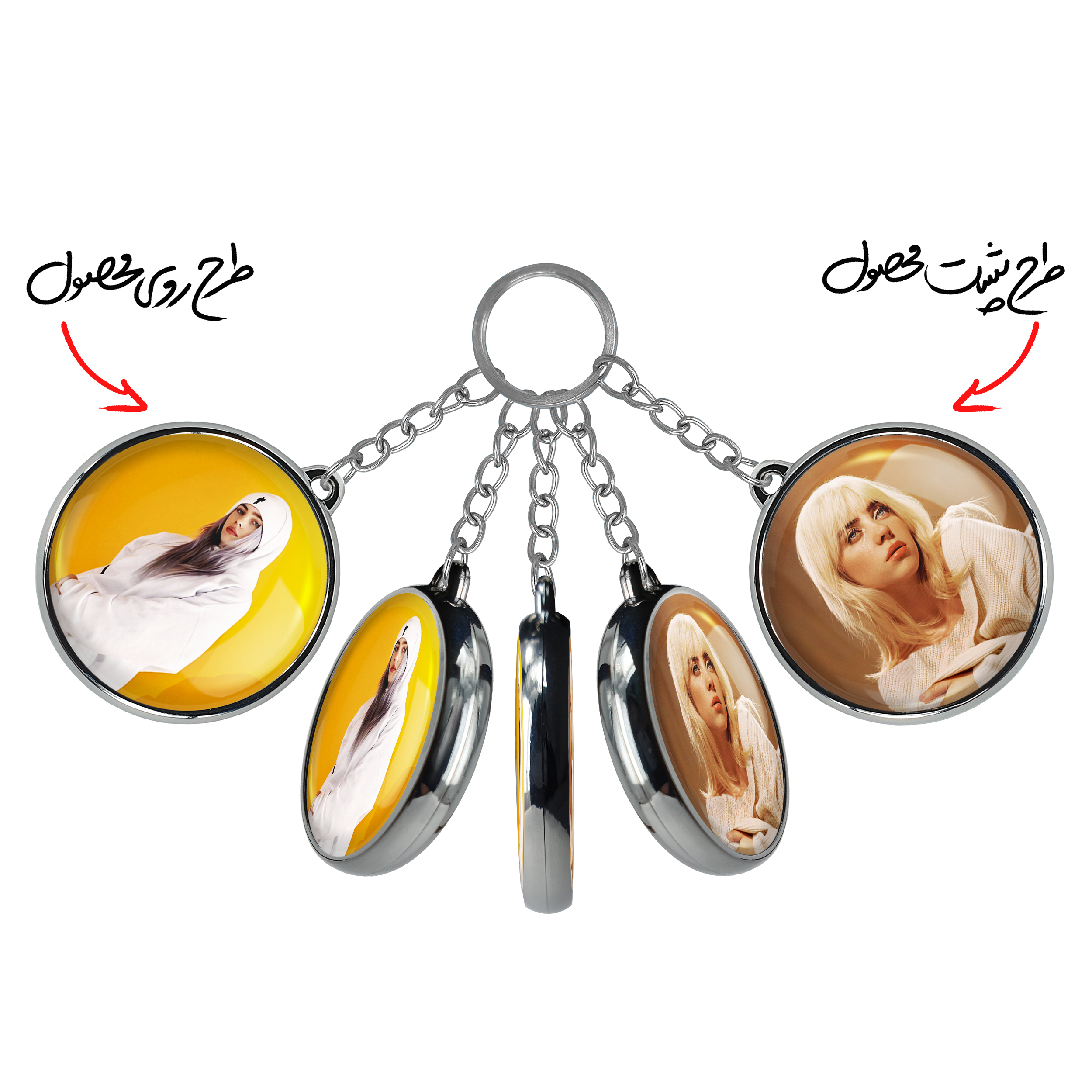 جاکلیدی دوطرفه بیلی آیلیش Billie Eilish خندالو محصولی کاربردی و جدید است که در هر دو سمت محصول، تصویری متفاوت اما از یک موضوع چاپ شده و تفاوت اصلی آن با جاکلیدی های یک طرفه در همین است که هر دو سمت پشت و روی جاکلیدی، طرحی دیدنی و جذاب دارد.