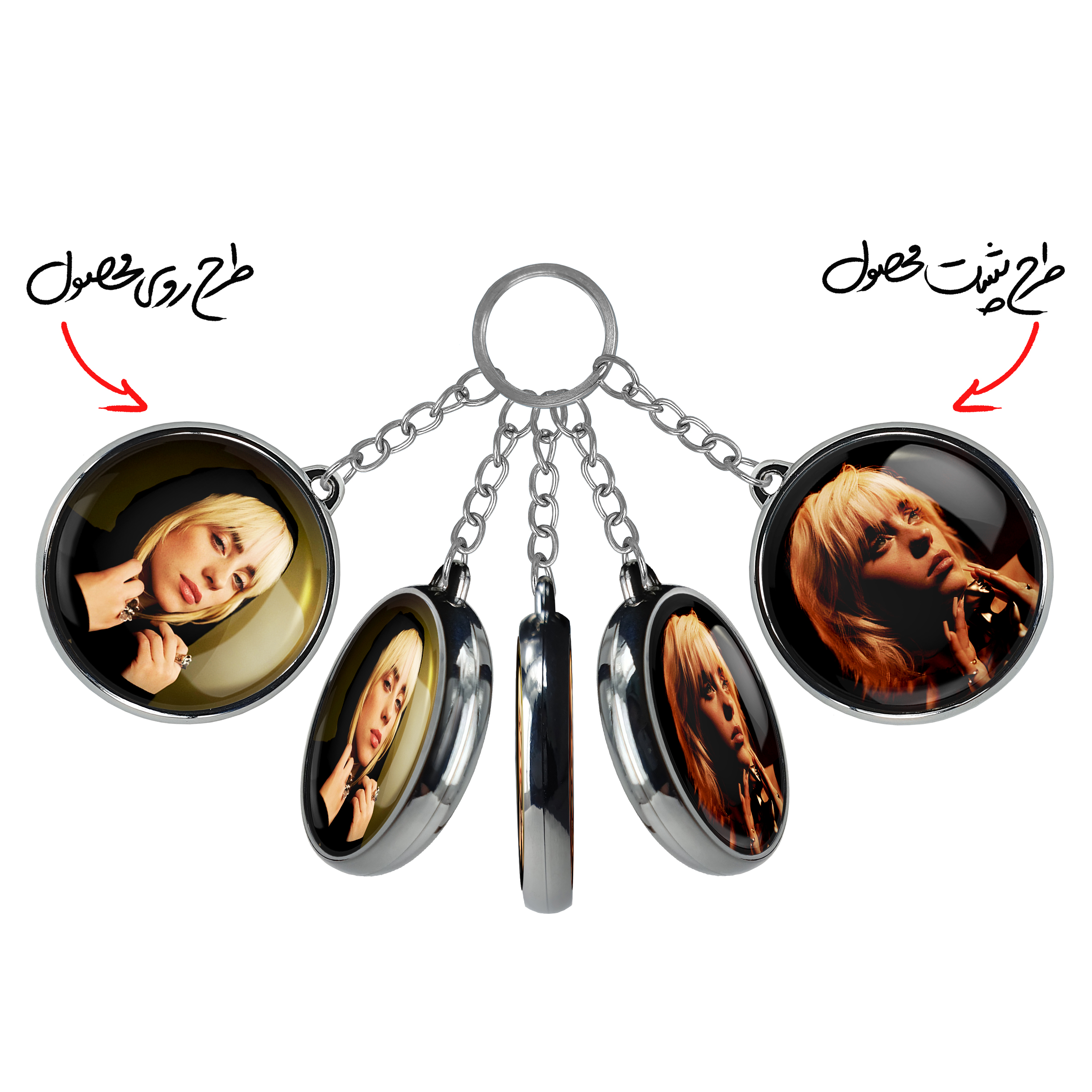 جاکلیدی دوطرفه بیلی آیلیش Billie Eilish خندالو محصولی کاربردی و جدید است که در هر دو سمت محصول، تصویری متفاوت اما از یک موضوع چاپ شده و تفاوت اصلی آن با جاکلیدی های یک طرفه در همین است که هر دو سمت پشت و روی جاکلیدی، طرحی دیدنی و جذاب دارد.