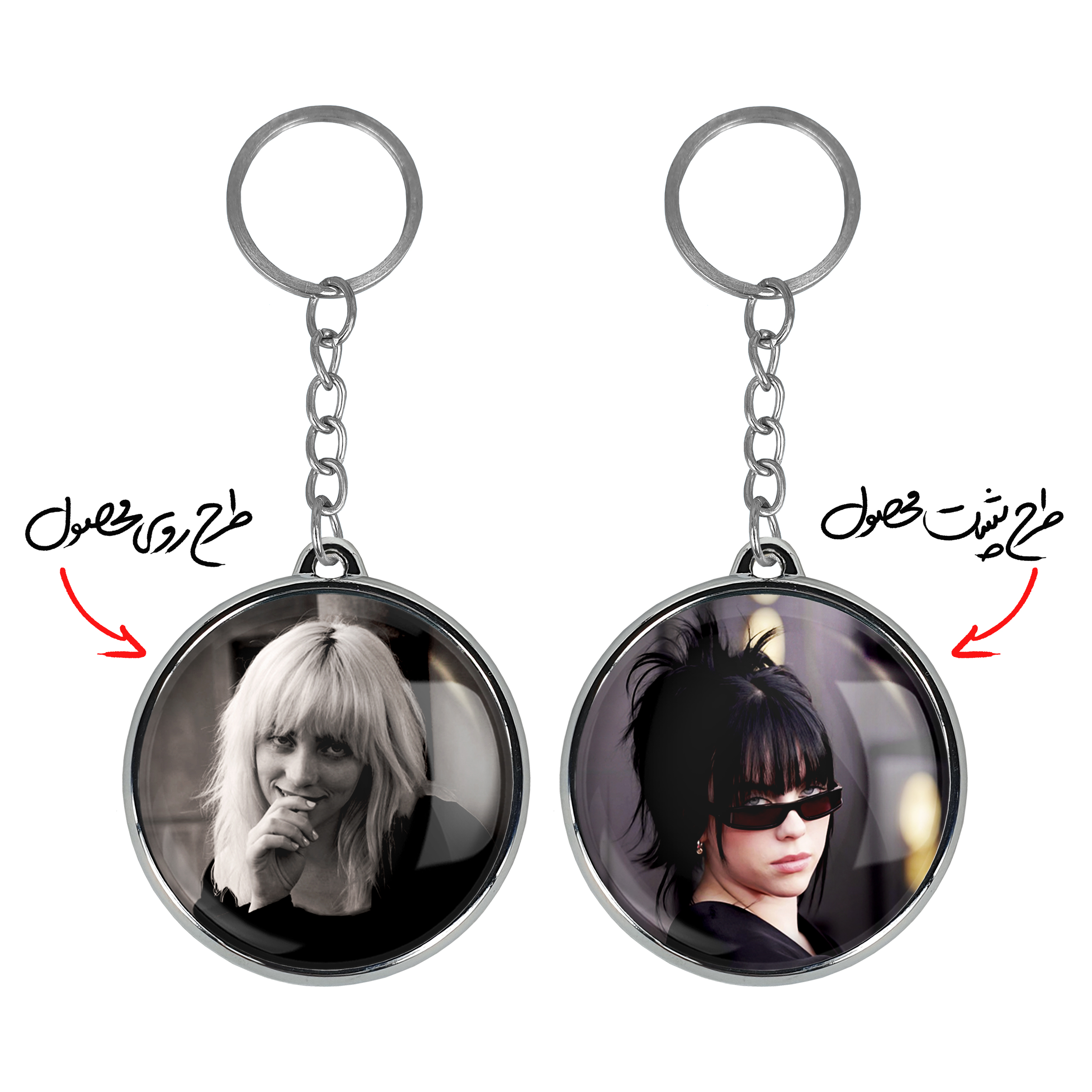 جاکلیدی دوطرفه بیلی آیلیش Billie Eilish خندالو محصولی کاربردی و جدید است که در هر دو سمت محصول، تصویری متفاوت اما از یک موضوع چاپ شده و تفاوت اصلی آن با جاکلیدی های یک طرفه در همین است که هر دو سمت پشت و روی جاکلیدی، طرحی دیدنی و جذاب دارد.