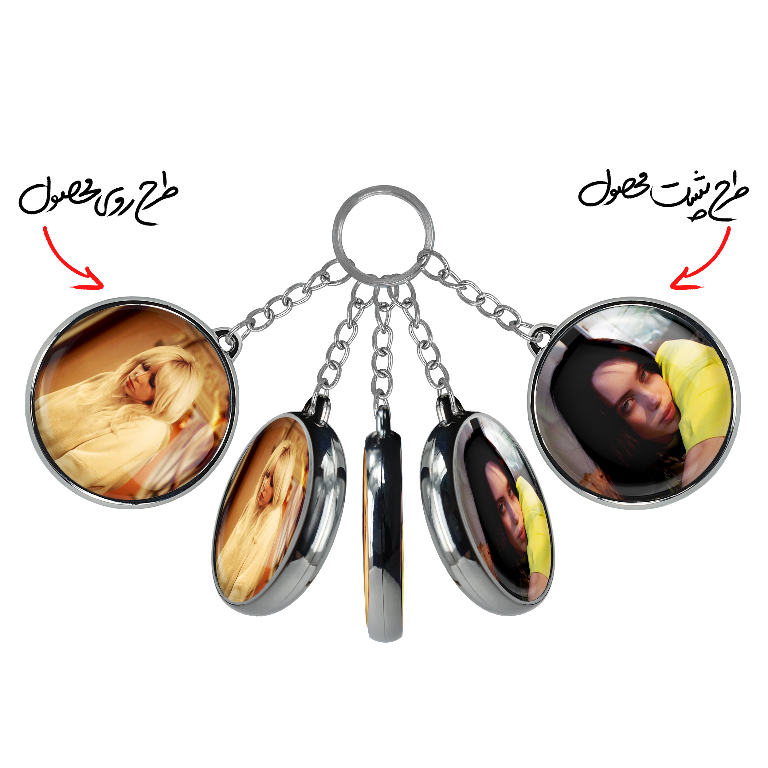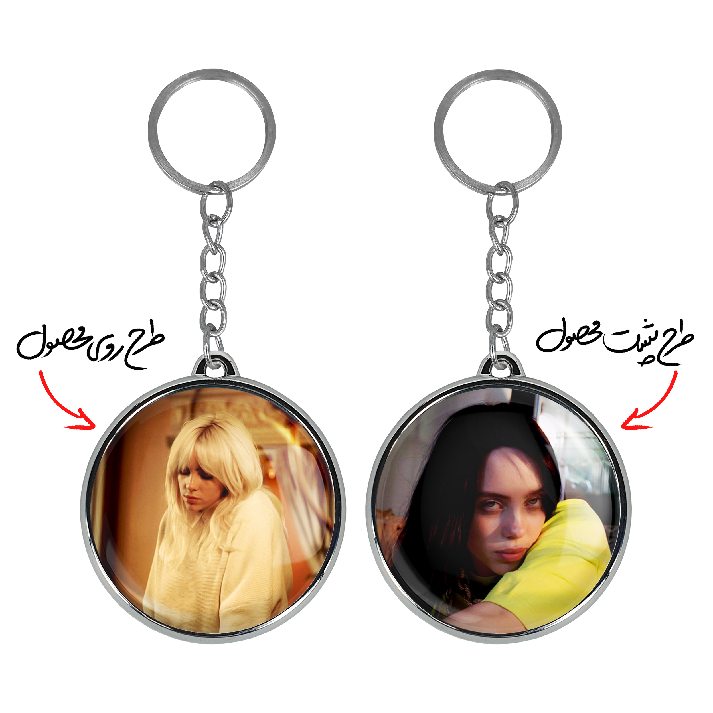 جاکلیدی دوطرفه بیلی آیلیش Billie Eilish خندالو محصولی کاربردی و جدید است که در هر دو سمت محصول، تصویری متفاوت اما از یک موضوع چاپ شده و تفاوت اصلی آن با جاکلیدی های یک طرفه در همین است که هر دو سمت پشت و روی جاکلیدی، طرحی دیدنی و جذاب دارد.