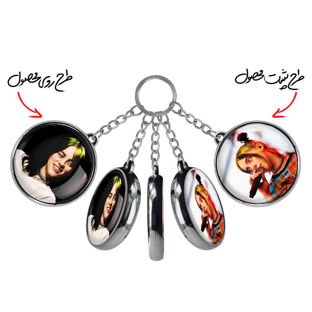 جاکلیدی دوطرفه بیلی آیلیش Billie Eilish خندالو محصولی کاربردی و جدید است که در هر دو سمت محصول، تصویری متفاوت اما از یک موضوع چاپ شده و تفاوت اصلی آن با جاکلیدی های یک طرفه در همین است که هر دو سمت پشت و روی جاکلیدی، طرحی دیدنی و جذاب دارد.
