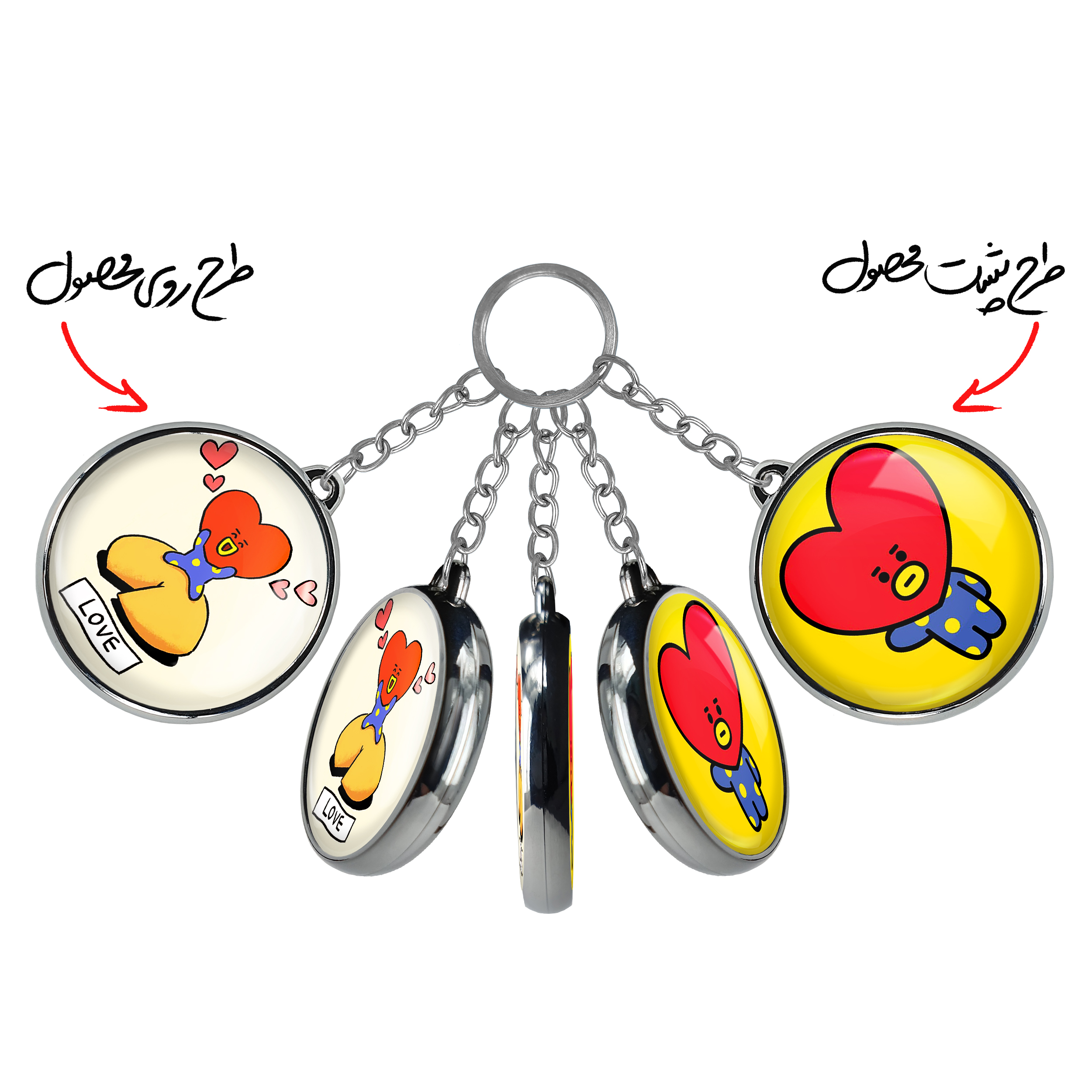 جاکلیدی دوطرفه تاتا BT21 Tataخندالو محصولی کاربردی و جدید است که در هر دو سمت محصول، تصویری متفاوت اما از یک موضوع چاپ شده و تفاوت اصلی آن با جاکلیدی های یک طرفه در همین است که هر دو سمت پشت و روی جاکلیدی، طرحی دیدنی و جذاب دارد.