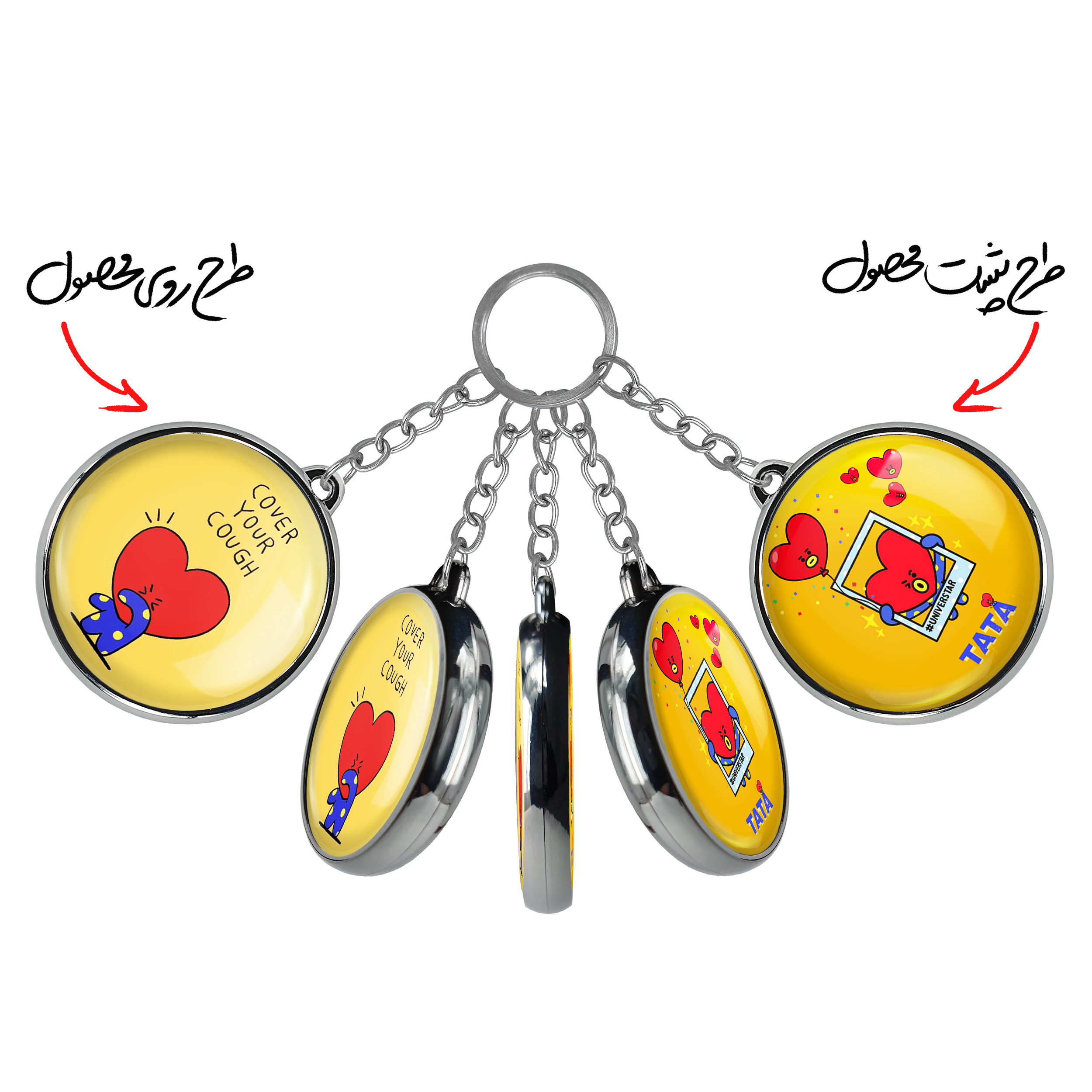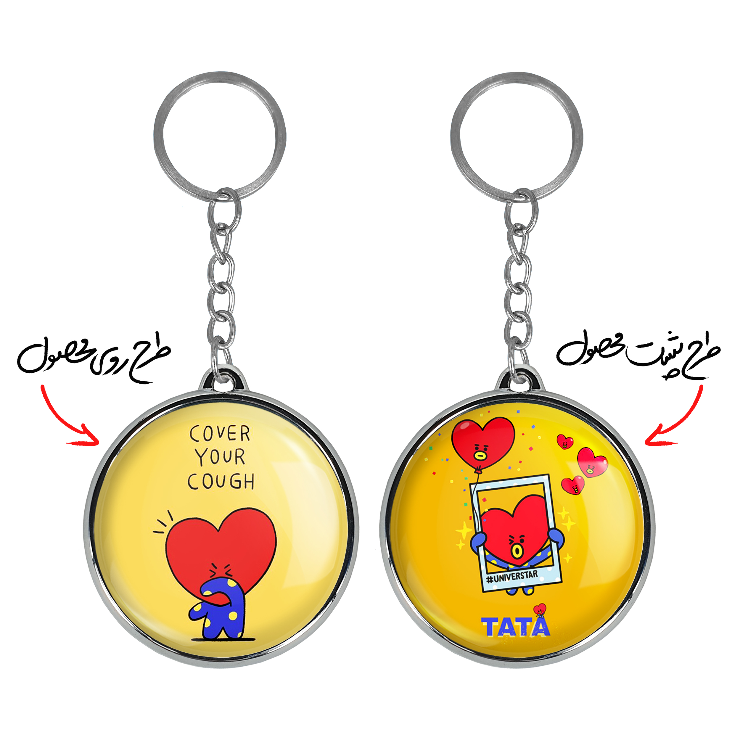 جاکلیدی دوطرفه تاتا BT21 Tataخندالو محصولی کاربردی و جدید است که در هر دو سمت محصول، تصویری متفاوت اما از یک موضوع چاپ شده و تفاوت اصلی آن با جاکلیدی های یک طرفه در همین است که هر دو سمت پشت و روی جاکلیدی، طرحی دیدنی و جذاب دارد.