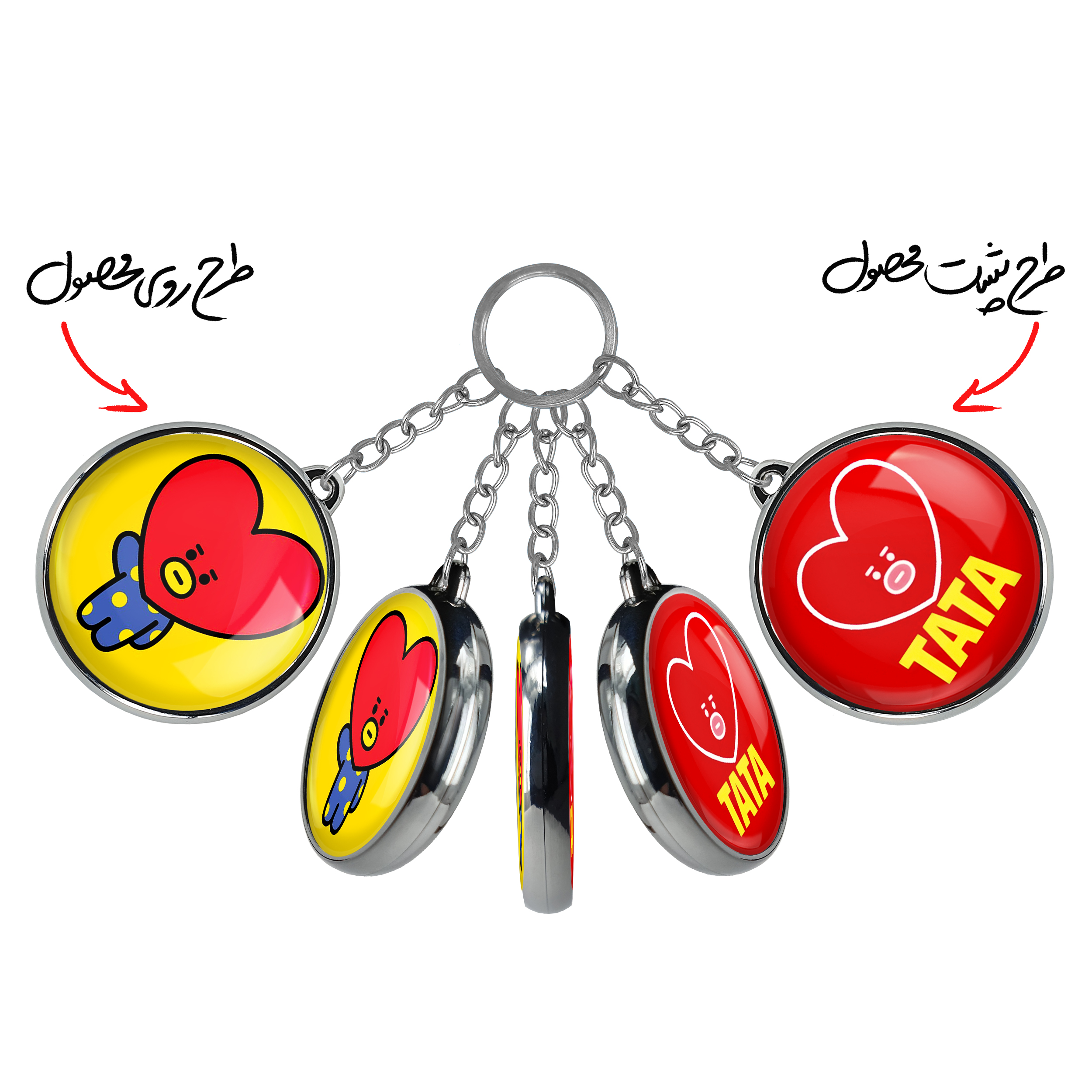 جاکلیدی دوطرفه تاتا BT21 Tataخندالو محصولی کاربردی و جدید است که در هر دو سمت محصول، تصویری متفاوت اما از یک موضوع چاپ شده و تفاوت اصلی آن با جاکلیدی های یک طرفه در همین است که هر دو سمت پشت و روی جاکلیدی، طرحی دیدنی و جذاب دارد.