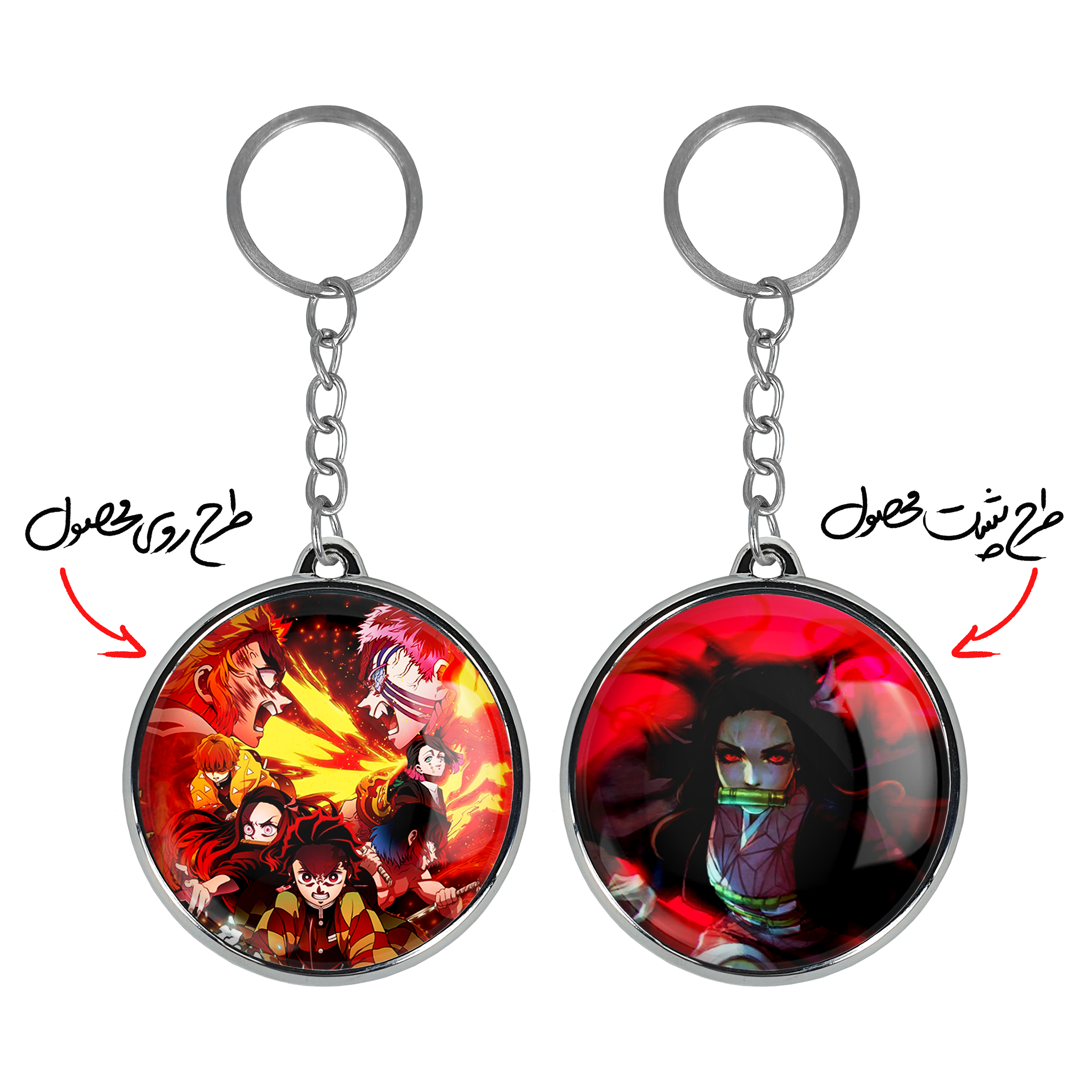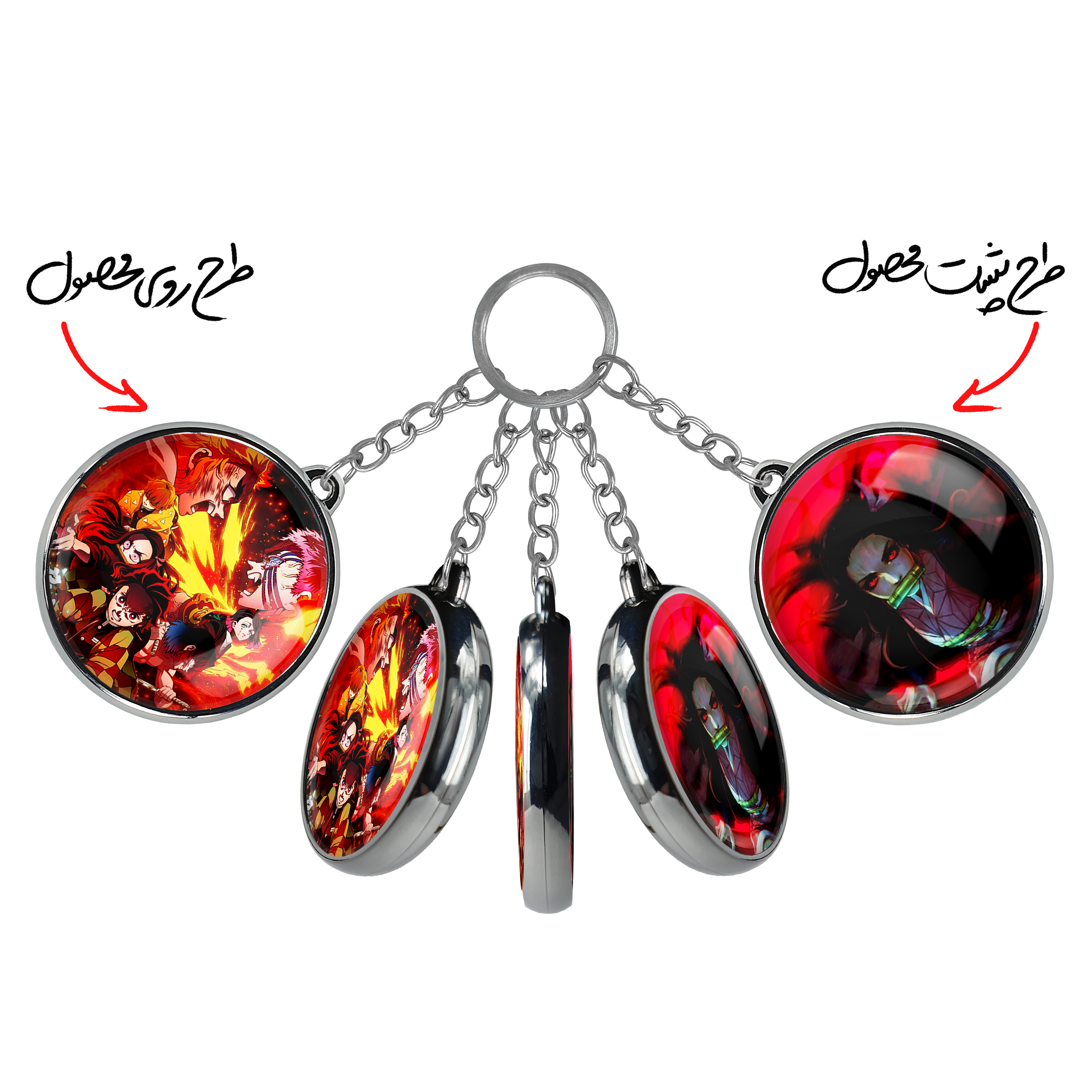 جاکلیدی دوطرفه تانجیرو و دوستان انیمه شیطان کش خندالو محصولی کاربردی و جدید است که در هر دو سمت محصول، تصویری متفاوت اما از یک موضوع چاپ شده و تفاوت اصلی آن با جاکلیدی های یک طرفه در همین است که هر دو سمت پشت و روی جاکلیدی، طرحی دیدنی و جذاب دارد. همچنین رینگ بکار برده شده برای دور طرح ها آبکاری کروم درجه یک و رنگ ثابت است و برخلاف سایر محصولات مشابه، از رنگ های متفرقه و یا سفید استفاده نشده، که این مهم، زیبایی محصول نهایی را چند برابر کرده است. جاکلیدی های دوطرفه تانجیرو و دوستان انیمه شیطان کش با استفاده از روکش سلفون براق ضدخش تولید شده که خاصیت ضدخش بودن آن عمر مفید استفاده از جاکلیدی ها را افزایش میدهد. چاپ جاکلیدی ها با دستگاه های استاندارد و با بهترین سطح کیفیت صورت گرفته و طرح با شفافیتی مثال زدنی و با سلفون چسبی تولید شده است که باعث شده محصول نهایی بدون شکست نور دیده شود. همچنین بسته بندی جذاب و مینیمال جاکلیدی دوطرفه تانجیرو و دوستان انیمه شیطان کش ، آنها را محصولی مناسب هدیه کرده است. زنجیر و حلقه بکار برده شده در جاکلیدی خندالو از نوع حلقه ضخیم و محکم بوده و حین استفاده آسیب نمی بیند.