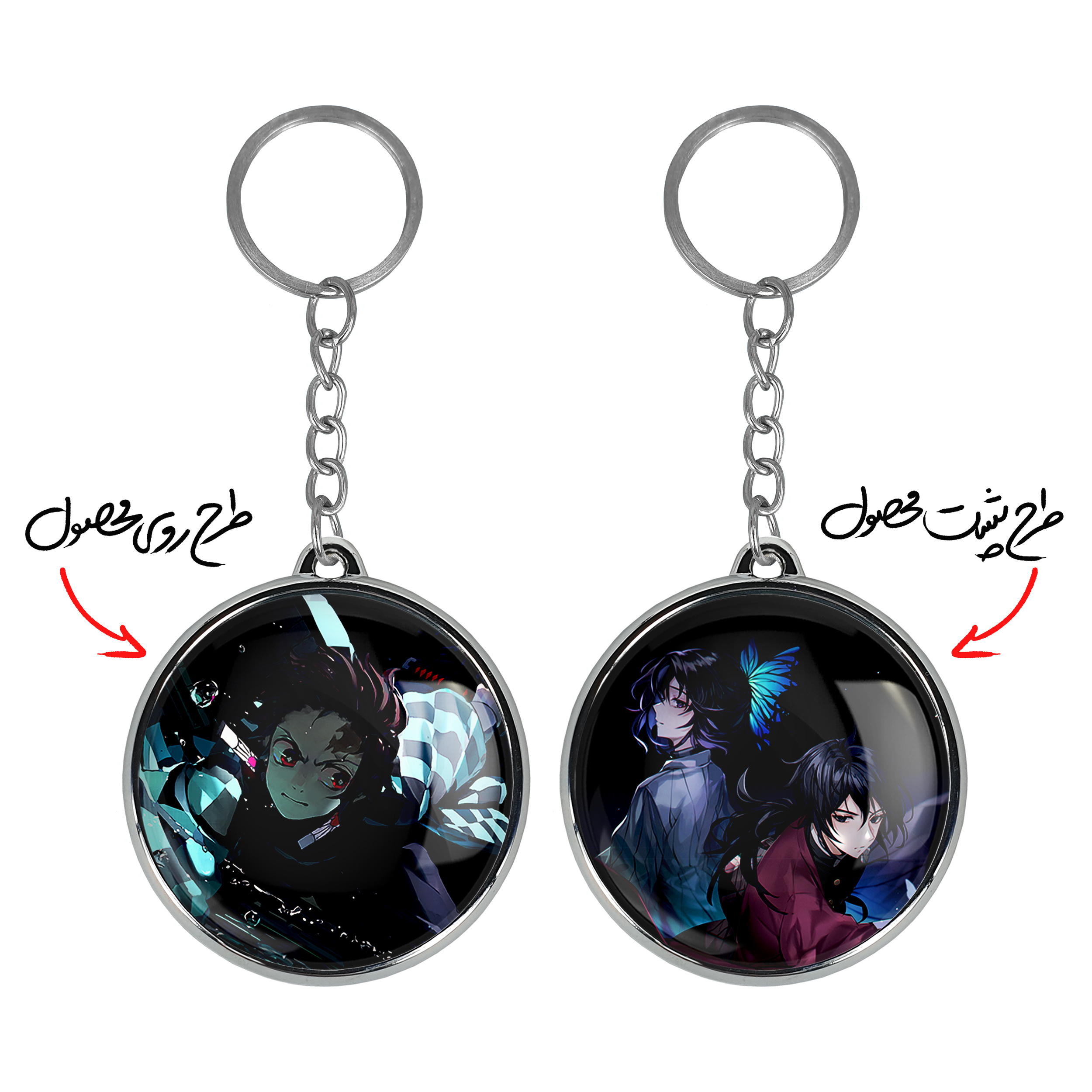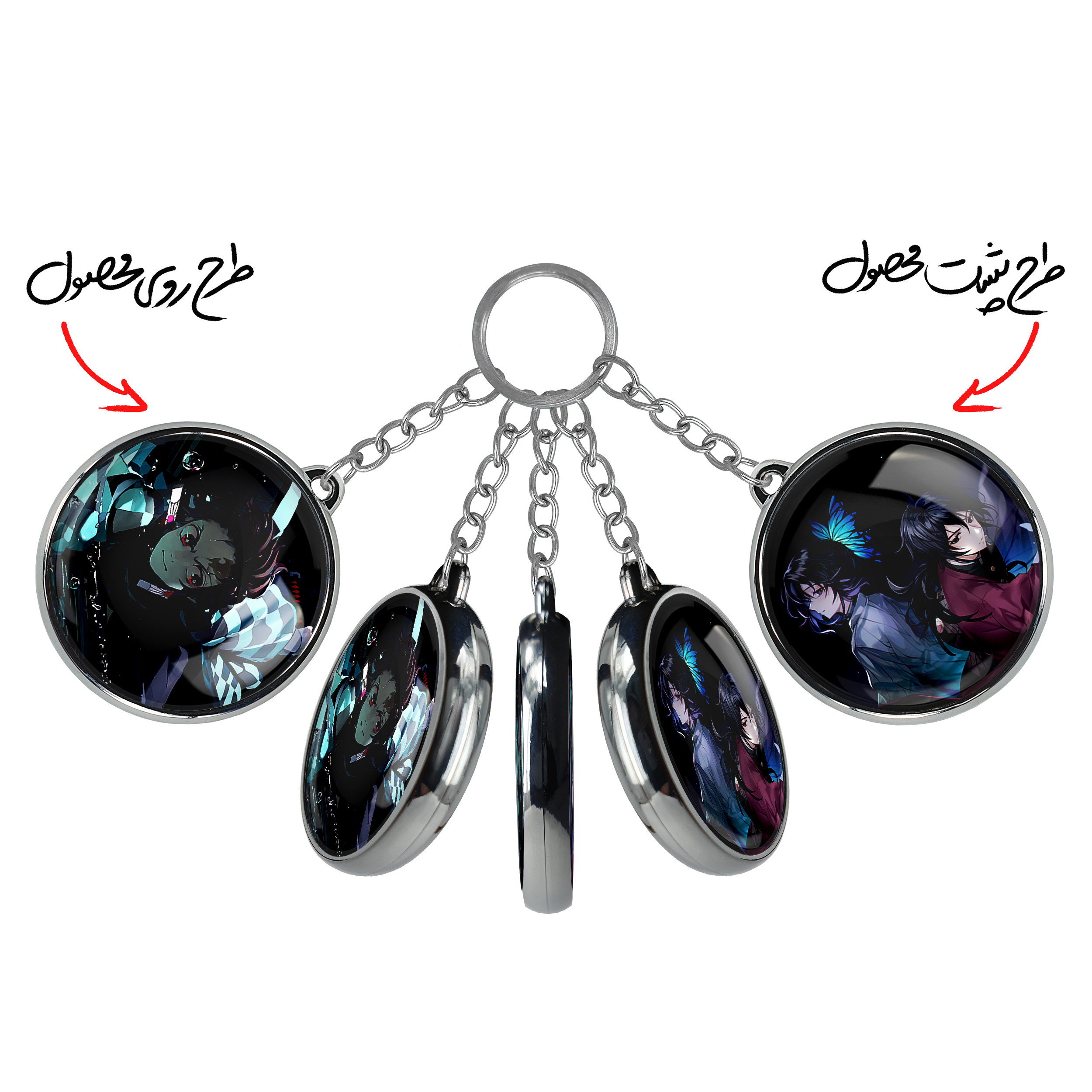 جاکلیدی دوطرفه تانیجرو انیمه شیطان کش خندالو محصولی کاربردی و جدید است که در هر دو سمت محصول، تصویری متفاوت اما از یک موضوع چاپ شده و تفاوت اصلی آن با جاکلیدی های یک طرفه در همین است که هر دو سمت پشت و روی جاکلیدی، طرحی دیدنی و جذاب دارد. همچنین رینگ بکار برده شده برای دور طرح ها آبکاری کروم درجه یک و رنگ ثابت است و برخلاف سایر محصولات مشابه، از رنگ های متفرقه و یا سفید استفاده نشده، که این مهم، زیبایی محصول نهایی را چند برابر کرده است. جاکلیدی های دوطرفه تانیجرو انیمه شیطان کش با استفاده از روکش سلفون براق ضدخش تولید شده که خاصیت ضدخش بودن آن عمر مفید استفاده از جاکلیدی ها را افزایش میدهد. چاپ جاکلیدی ها با دستگاه های استاندارد و با بهترین سطح کیفیت صورت گرفته و طرح با شفافیتی مثال زدنی و با سلفون چسبی تولید شده است که باعث شده محصول نهایی بدون شکست نور دیده شود. همچنین بسته بندی جذاب و مینیمال جاکلیدی دوطرفه تانیجرو انیمه شیطان کش ، آنها را محصولی مناسب هدیه کرده است. زنجیر و حلقه بکار برده شده در جاکلیدی خندالو از نوع حلقه ضخیم و محکم بوده و حین استفاده آسیب نمی بیند.
