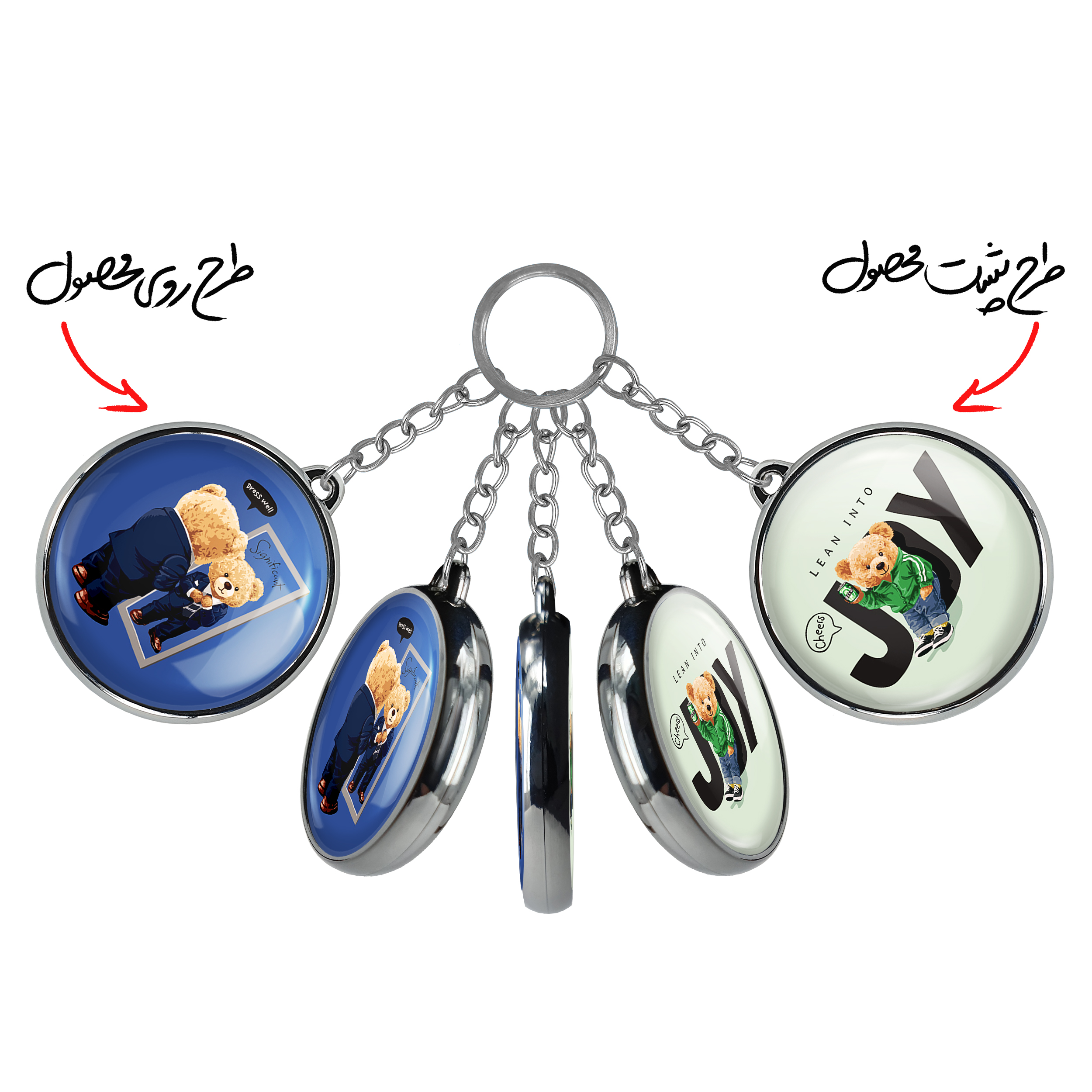 جاکلیدی دوطرفه تدی Teddyخندالو محصولی کاربردی و جدید است که در هر دو سمت محصول، تصویری متفاوت اما از یک موضوع چاپ شده و تفاوت اصلی آن با جاکلیدی های یک طرفه در همین است که هر دو سمت پشت و روی جاکلیدی، طرحی دیدنی و جذاب دارد.