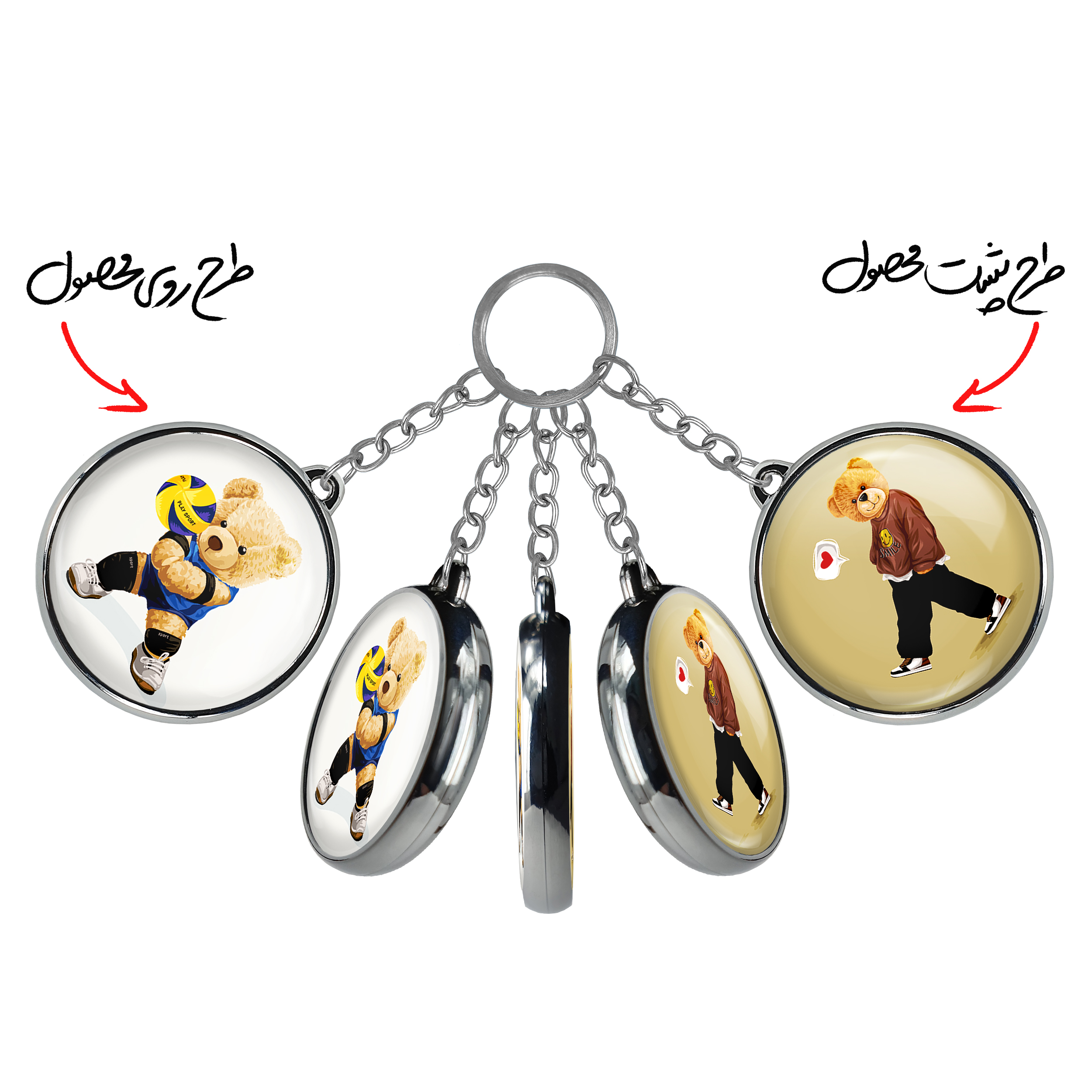 جاکلیدی دوطرفه تدی Teddyخندالو محصولی کاربردی و جدید است که در هر دو سمت محصول، تصویری متفاوت اما از یک موضوع چاپ شده و تفاوت اصلی آن با جاکلیدی های یک طرفه در همین است که هر دو سمت پشت و روی جاکلیدی، طرحی دیدنی و جذاب دارد.