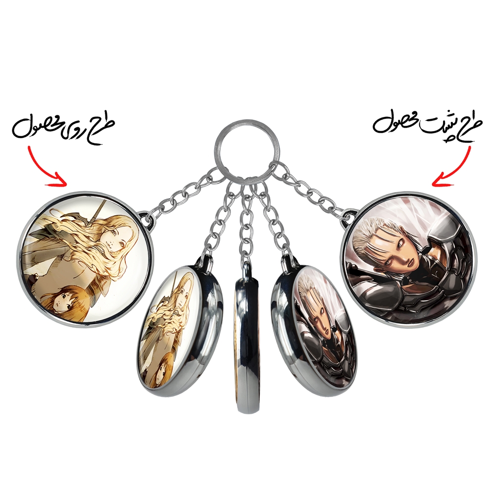 جاکلیدی دوطرفه ترسا و کلر انیمه کلیمور خندالو محصولی کاربردی و جدید است که در هر دو سمت محصول، تصویری متفاوت اما از یک موضوع چاپ شده و تفاوت اصلی آن با جاکلیدی های یک طرفه در همین است که هر دو سمت پشت و روی جاکلیدی، طرحی دیدنی و جذاب دارد. همچنین رینگ بکار برده شده برای دور طرح ها آبکاری کروم درجه یک و رنگ ثابت است و برخلاف سایر محصولات مشابه، از رنگ های متفرقه و یا سفید استفاده نشده، که این مهم، زیبایی محصول نهایی را چند برابر کرده است. جاکلیدی های دوطرفه ترسا و کلر انیمه کلیمور با استفاده از روکش سلفون براق ضدخش تولید شده که خاصیت ضدخش بودن آن عمر مفید استفاده از جاکلیدی ها را افزایش میدهد. چاپ جاکلیدی ها با دستگاه های استاندارد و با بهترین سطح کیفیت صورت گرفته و طرح با شفافیتی مثال زدنی و با سلفون چسبی تولید شده است که باعث شده محصول نهایی بدون شکست نور دیده شود. همچنین بسته بندی جذاب و مینیمال جاکلیدی دوطرفه ترسا و کلر انیمه کلیمور، آنها را محصولی مناسب هدیه کرده است. زنجیر و حلقه بکار برده شده در جاکلیدی خندالو از نوع حلقه ضخیم و محکم بوده و حین استفاده آسیب نمی بیند.