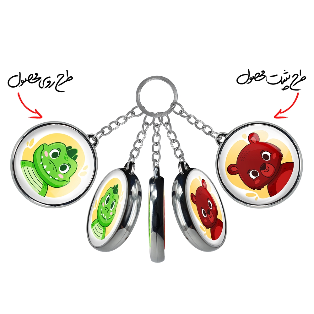 جاکلیدی دوطرفه تمساح حیوانات بامزه خندالو محصولی کاربردی و جدید است که در هر دو سمت محصول، تصویری متفاوت اما از یک موضوع چاپ شده و تفاوت اصلی آن با جاکلیدی های یک طرفه در همین است که هر دو سمت پشت و روی جاکلیدی، طرحی دیدنی و جذاب دارد. همچنین رینگ بکار برده شده برای دور طرح ها آبکاری کروم درجه یک و رنگ ثابت است و برخلاف سایر محصولات مشابه، از رنگ های متفرقه و یا سفید استفاده نشده، که این مهم، زیبایی محصول نهایی را چند برابر کرده است. جاکلیدی های دوطرفه تمساح حیوانات بامزه با استفاده از روکش سلفون براق ضدخش تولید شده که خاصیت ضدخش بودن آن عمر مفید استفاده از جاکلیدی ها را افزایش میدهد. چاپ جاکلیدی ها با دستگاه های استاندارد و با بهترین سطح کیفیت صورت گرفته و طرح با شفافیتی مثال زدنی و با سلفون چسبی تولید شده است که باعث شده محصول نهایی بدون شکست نور دیده شود. همچنین بسته بندی جذاب و مینیمال جاکلیدی دوطرفه تمساح حیوانات بامزه، آنها را محصولی مناسب هدیه کرده است. زنجیر و حلقه بکار برده شده در جاکلیدی خندالو از نوع حلقه ضخیم و محکم بوده و حین استفاده آسیب نمی بیند.