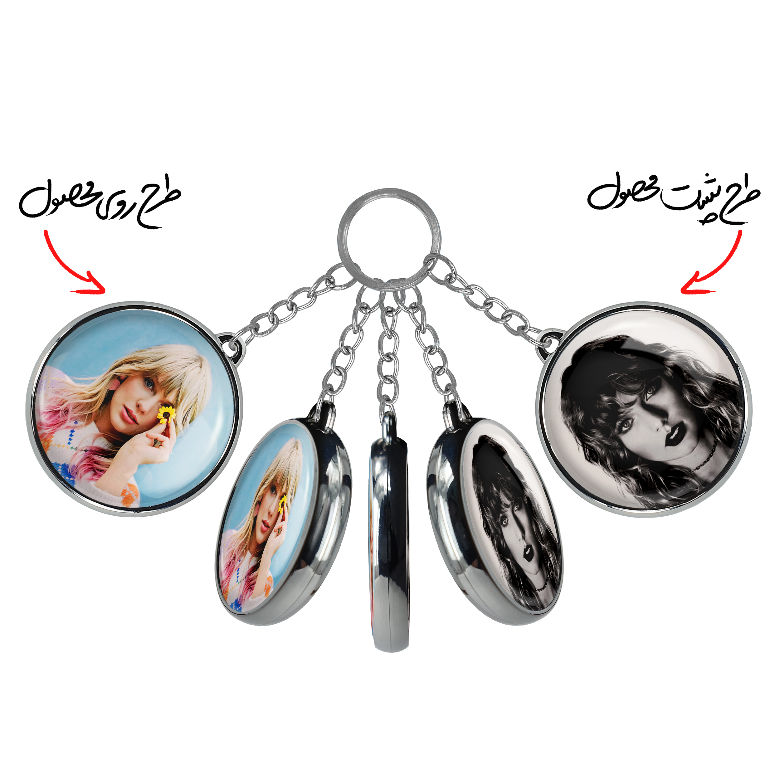 جاکلیدی دوطرفه تیلور سوئیفت Taylor Swift خندالو محصولی کاربردی و جدید است که در هر دو سمت محصول، تصویری متفاوت اما از یک موضوع چاپ شده و تفاوت اصلی آن با جاکلیدی های یک طرفه در همین است که هر دو سمت پشت و روی جاکلیدی، طرحی دیدنی و جذاب دارد.
