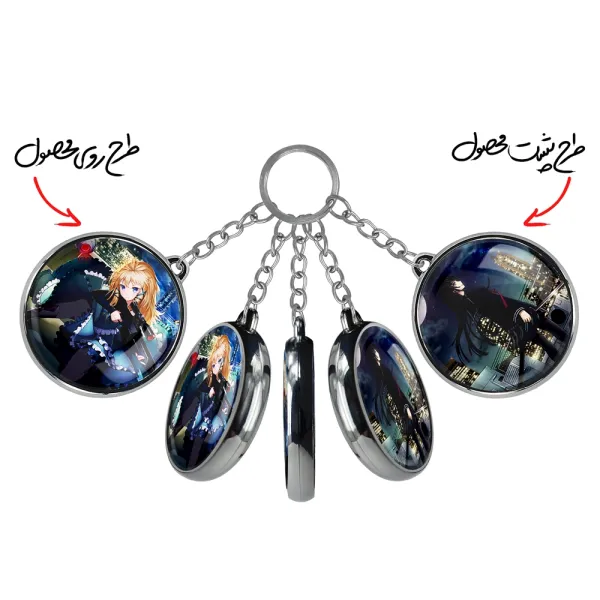 جاکلیدی دوطرفه تینا انیمه گلوله سیاه خندالو محصولی کاربردی و جدید است که در هر دو سمت محصول، تصویری متفاوت اما از یک موضوع چاپ شده و تفاوت اصلی آن با جاکلیدی های یک طرفه در همین است که هر دو سمت پشت و روی جاکلیدی، طرحی دیدنی و جذاب دارد.