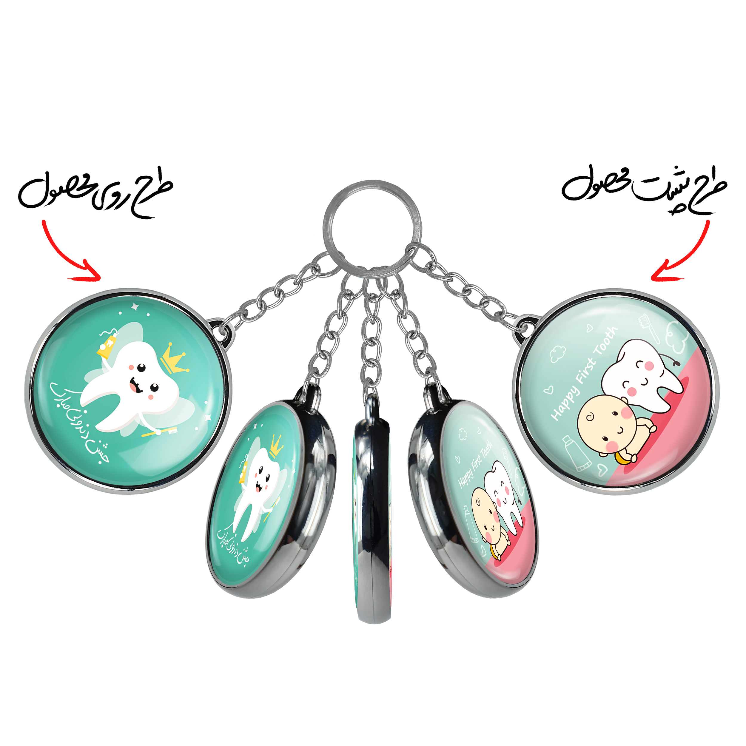 جاکلیدی دوطرفه جشن دندونی پسرونه خندالو محصولی کاربردی و جدید است که در هر دو سمت محصول، تصویری متفاوت اما از یک موضوع چاپ شده و تفاوت اصلی آن با جاکلیدی های یک طرفه در همین است که هر دو سمت پشت و روی جاکلیدی، طرحی دیدنی و جذاب دارد.