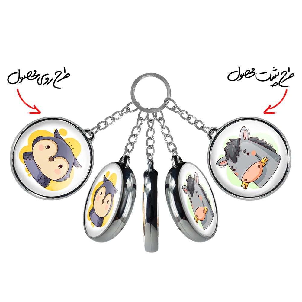 جاکلیدی دوطرفه جغد حیوانات بامزه خندالو محصولی کاربردی و جدید است که در هر دو سمت محصول، تصویری متفاوت اما از یک موضوع چاپ شده و تفاوت اصلی آن با جاکلیدی های یک طرفه در همین است که هر دو سمت پشت و روی جاکلیدی، طرحی دیدنی و جذاب دارد. همچنین رینگ بکار برده شده برای دور طرح ها آبکاری کروم درجه یک و رنگ ثابت است و برخلاف سایر محصولات مشابه، از رنگ های متفرقه و یا سفید استفاده نشده، که این مهم، زیبایی محصول نهایی را چند برابر کرده است. جاکلیدی های دوطرفه جغد حیوانات بامزه با استفاده از روکش سلفون براق ضدخش تولید شده که خاصیت ضدخش بودن آن عمر مفید استفاده از جاکلیدی ها را افزایش میدهد. چاپ جاکلیدی ها با دستگاه های استاندارد و با بهترین سطح کیفیت صورت گرفته و طرح با شفافیتی مثال زدنی و با سلفون چسبی تولید شده است که باعث شده محصول نهایی بدون شکست نور دیده شود. همچنین بسته بندی جذاب و مینیمال جاکلیدی دوطرفه جغد حیوانات بامزه، آنها را محصولی مناسب هدیه کرده است. زنجیر و حلقه بکار برده شده در جاکلیدی خندالو از نوع حلقه ضخیم و محکم بوده و حین استفاده آسیب نمی بیند.