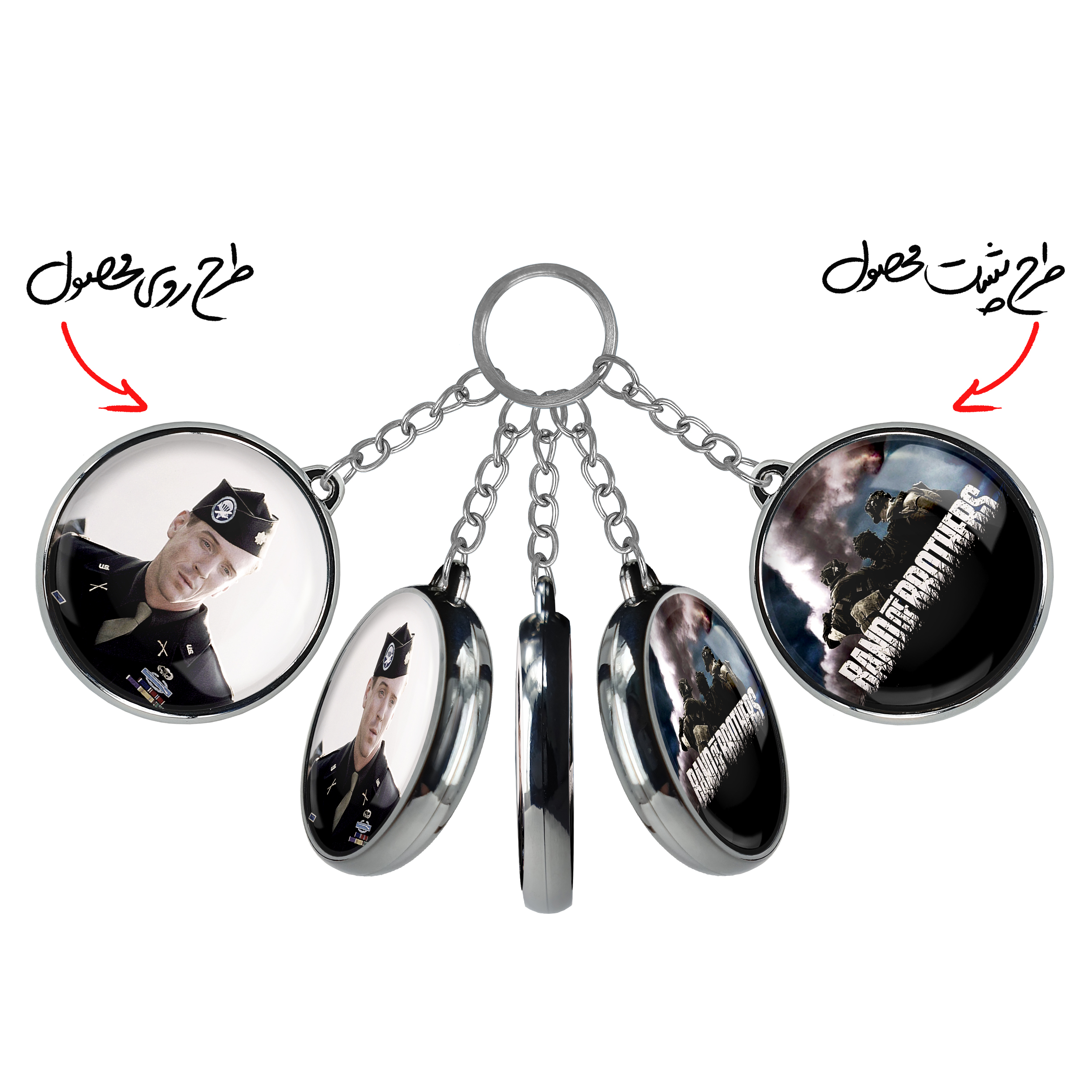 جاکلیدی دوطرفه جوخه برادران Band Of Brothersخندالو محصولی کاربردی و جدید است که در هر دو سمت محصول، تصویری متفاوت اما از یک موضوع چاپ شده و تفاوت اصلی آن با جاکلیدی های یک طرفه در همین است که هر دو سمت پشت و روی جاکلیدی، طرحی دیدنی و جذاب دارد. همچنین رینگ بکار برده شده برای دور طرح ها آبکاری کروم درجه یک و رنگ ثابت است و برخلاف سایر محصولات مشابه، از رنگ های متفرقه و یا سفید استفاده نشده، که این مهم، زیبایی محصول نهایی را چند برابر کرده است. جاکلیدی های دوطرفه جوخه برادران Band Of Brothersبا استفاده از روکش سلفون براق ضدخش تولید شده که خاصیت ضدخش بودن آن عمر مفید استفاده از جاکلیدی ها را افزایش میدهد. چاپ جاکلیدی ها با دستگاه های استاندارد و با بهترین سطح کیفیت صورت گرفته و طرح با شفافیتی مثال زدنی و با سلفون چسبی تولید شده است که باعث شده محصول نهایی بدون شکست نور دیده شود. همچنین بسته بندی جذاب و مینیمال جاکلیدی دوطرفه جوخه برادران Band Of Brothers، آنها را محصولی مناسب هدیه کرده است. زنجیر و حلقه بکار برده شده در جاکلیدی خندالو از نوع حلقه ضخیم و محکم بوده و حین استفاده آسیب نمی بیند.