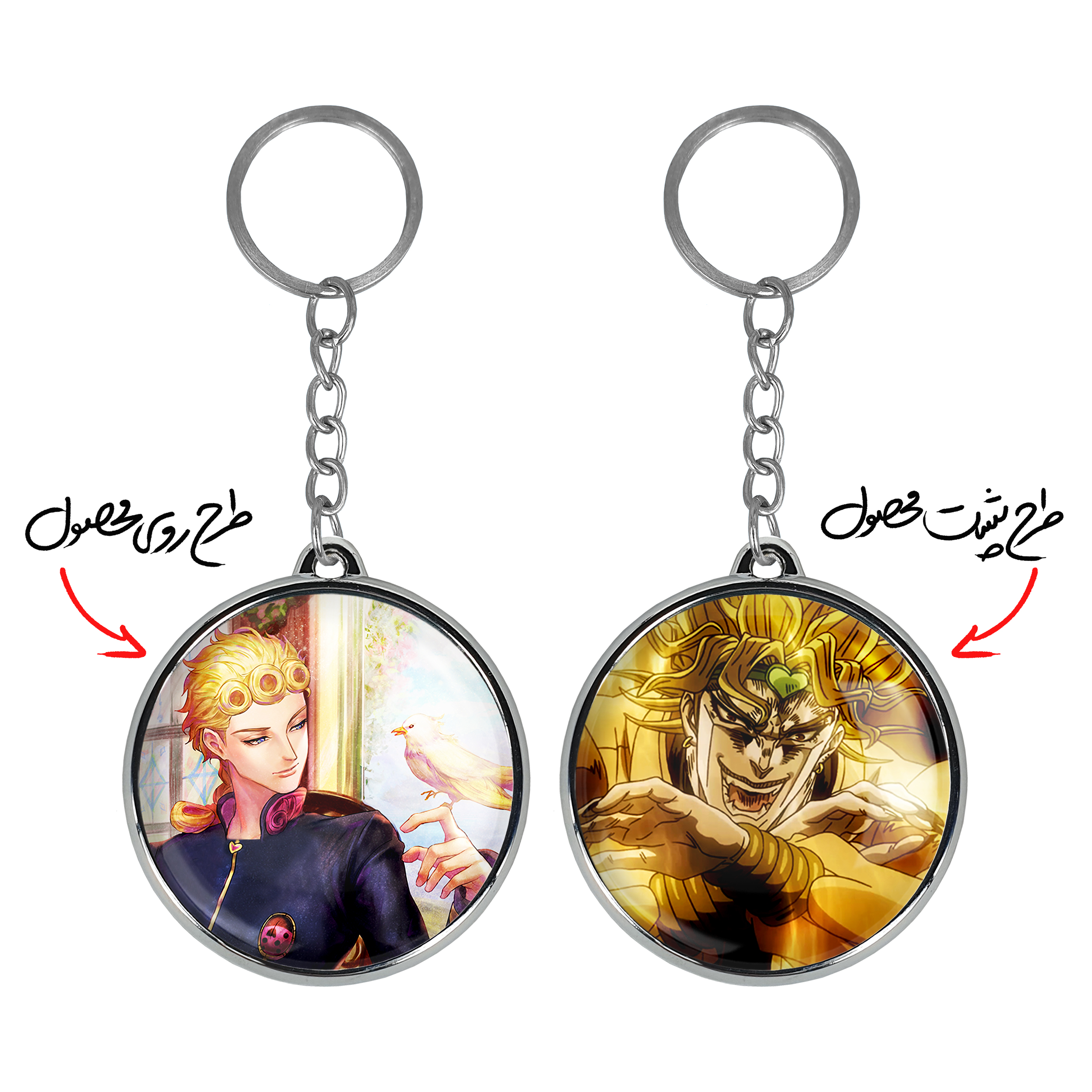 جاکلیدی دوطرفه جورنو جواوونو انیمه جوجو Jojo خندالو محصولی کاربردی و جدید است که در هر دو سمت محصول، تصویری متفاوت اما از یک موضوع چاپ شده و تفاوت اصلی آن با جاکلیدی های یک طرفه در همین است که هر دو سمت پشت و روی جاکلیدی، طرحی دیدنی و جذاب دارد. همچنین رینگ بکار برده شده برای دور طرح ها آبکاری کروم درجه یک و رنگ ثابت است و برخلاف سایر محصولات مشابه، از رنگ های متفرقه و یا سفید استفاده نشده، که این مهم، زیبایی محصول نهایی را چند برابر کرده است. جاکلیدی های دوطرفه جورنو جواوونو انیمه جوجو Jojo با استفاده از روکش سلفون براق ضدخش تولید شده که خاصیت ضدخش بودن آن عمر مفید استفاده از جاکلیدی ها را افزایش میدهد. چاپ جاکلیدی ها با دستگاه های استاندارد و با بهترین سطح کیفیت صورت گرفته و طرح با شفافیتی مثال زدنی و با سلفون چسبی تولید شده است که باعث شده محصول نهایی بدون شکست نور دیده شود. همچنین بسته بندی جذاب و مینیمال جاکلیدی دوطرفه جورنو جواوونو انیمه جوجو Jojo ، آنها را محصولی مناسب هدیه کرده است. زنجیر و حلقه بکار برده شده در جاکلیدی خندالو از نوع حلقه ضخیم و محکم بوده و حین استفاده آسیب نمی بیند.