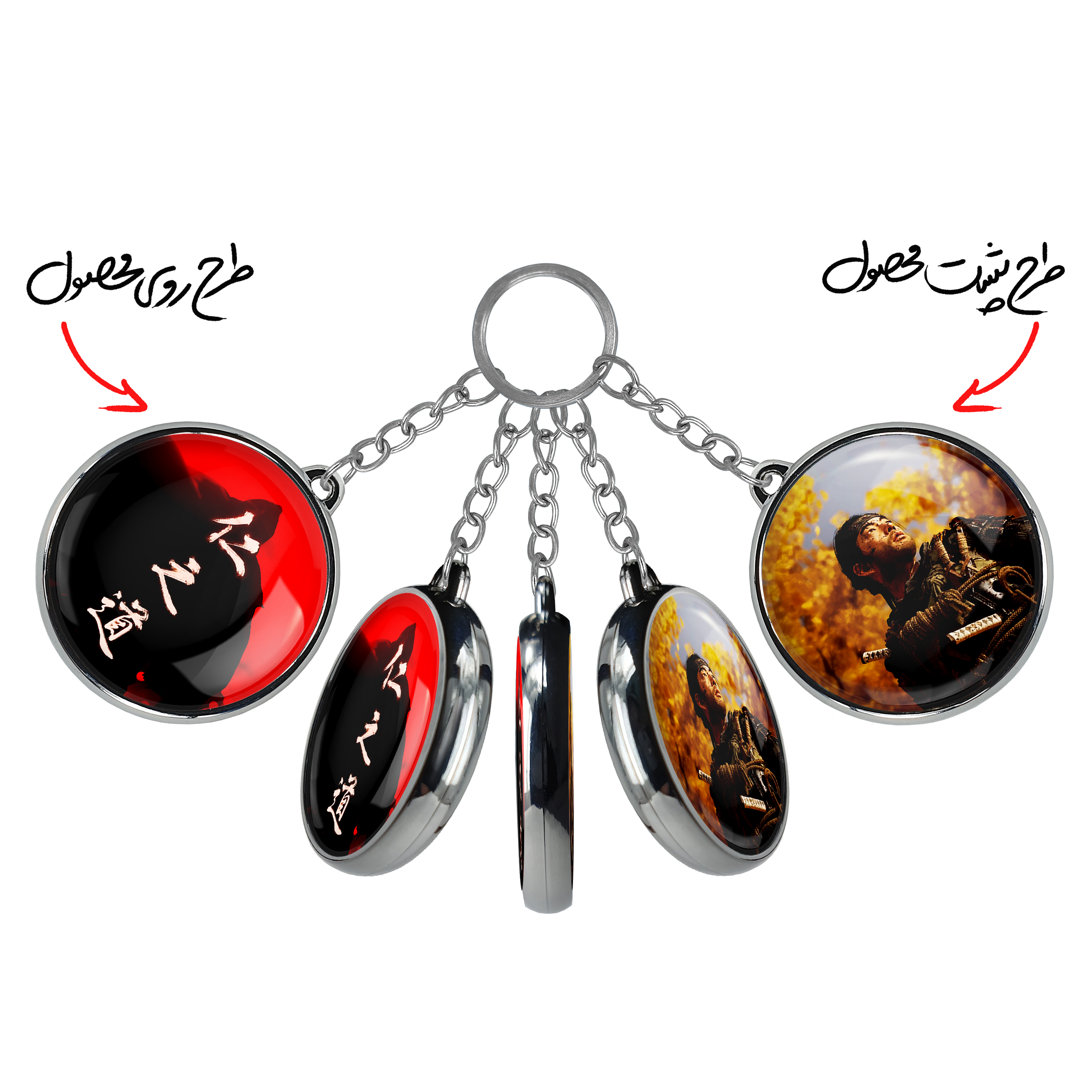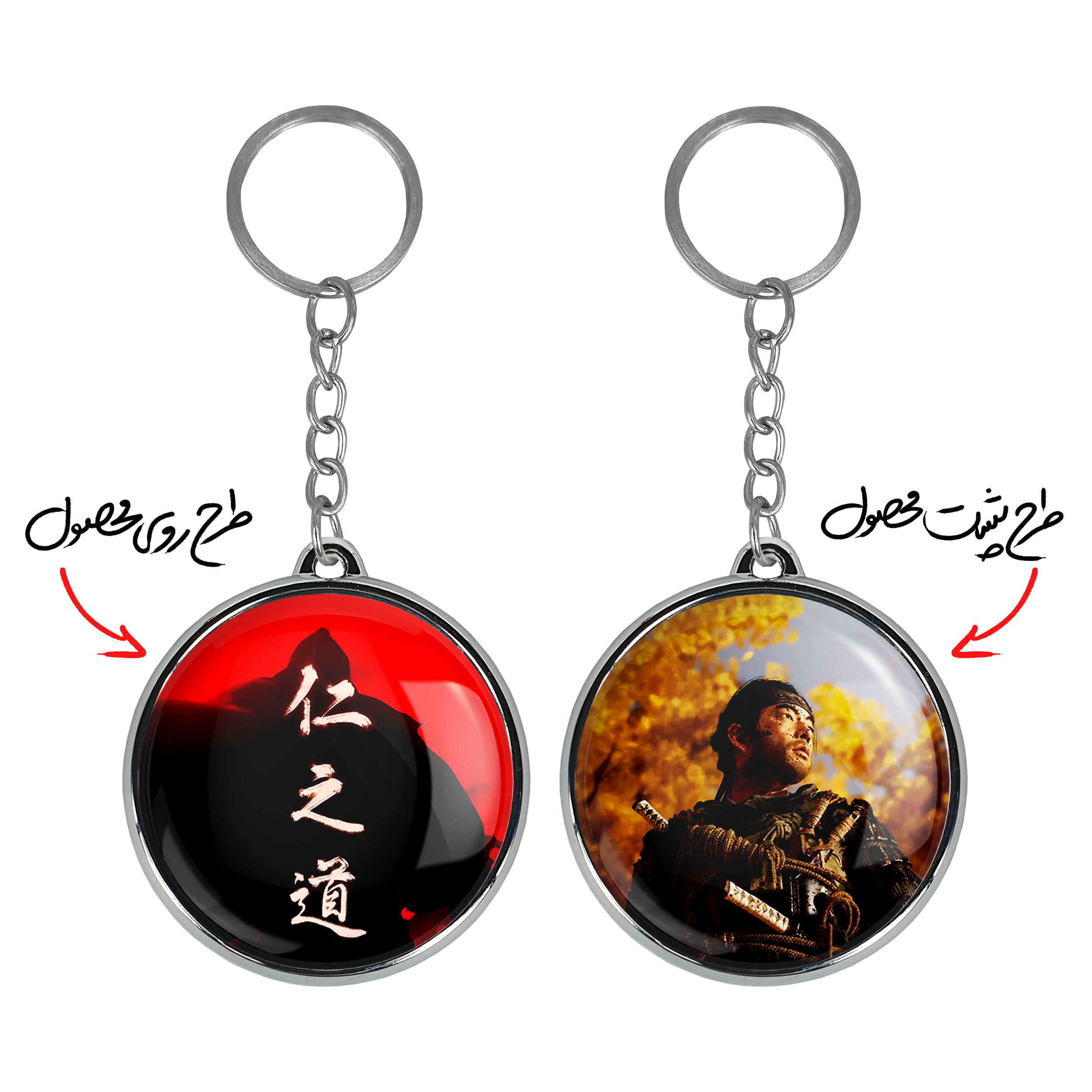 جاکلیدی دوطرفه جین گوست آف سوشیماخندالو محصولی کاربردی و جدید است که در هر دو سمت محصول، تصویری متفاوت اما از یک موضوع چاپ شده و تفاوت اصلی آن با جاکلیدی های یک طرفه در همین است که هر دو سمت پشت و روی جاکلیدی، طرحی دیدنی و جذاب دارد.