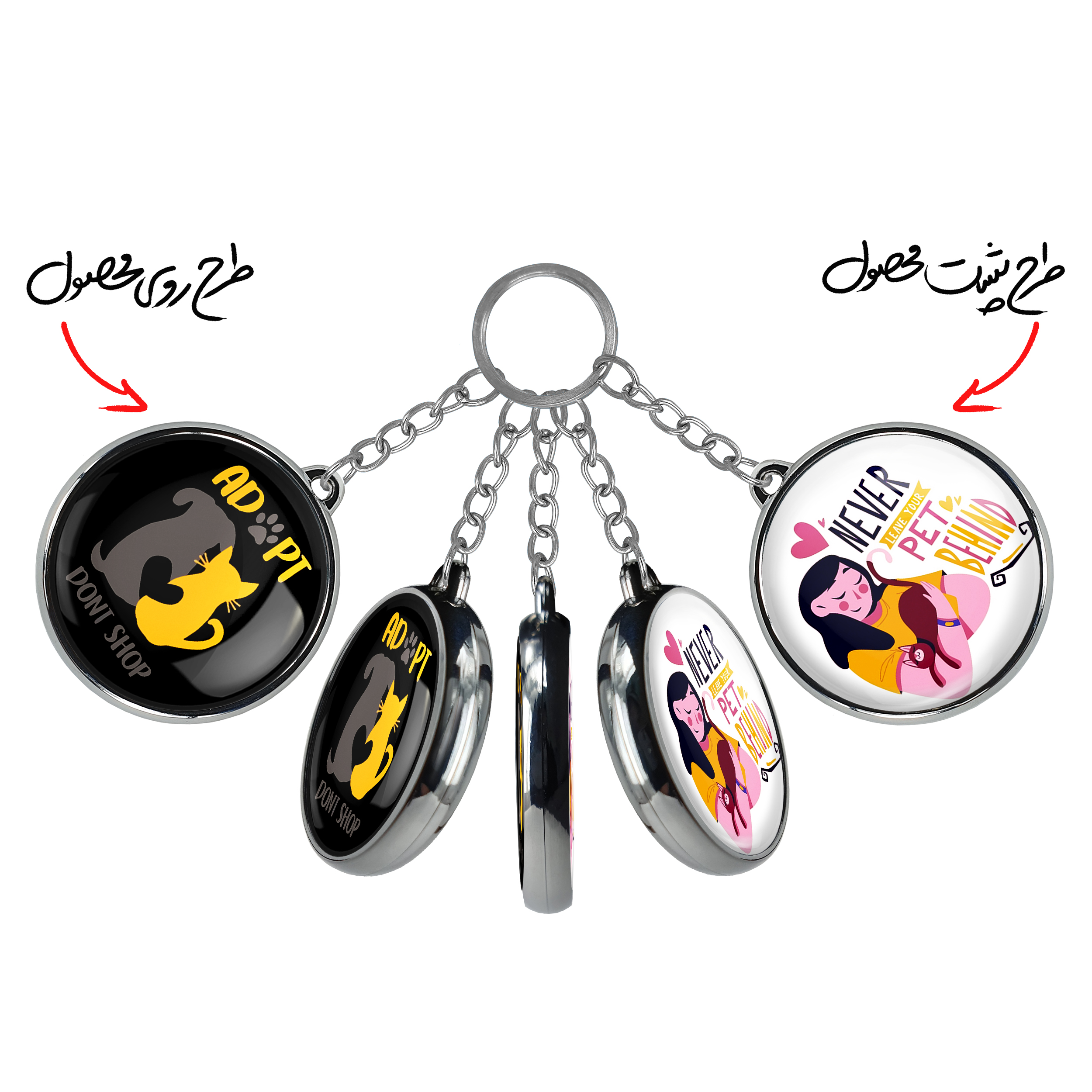 جاکلیدی دوطرفه حمایت از حیواناتخندالو محصولی کاربردی و جدید است که در هر دو سمت محصول، تصویری متفاوت اما از یک موضوع چاپ شده و تفاوت اصلی آن با جاکلیدی های یک طرفه در همین است که هر دو سمت پشت و روی جاکلیدی، طرحی دیدنی و جذاب دارد.