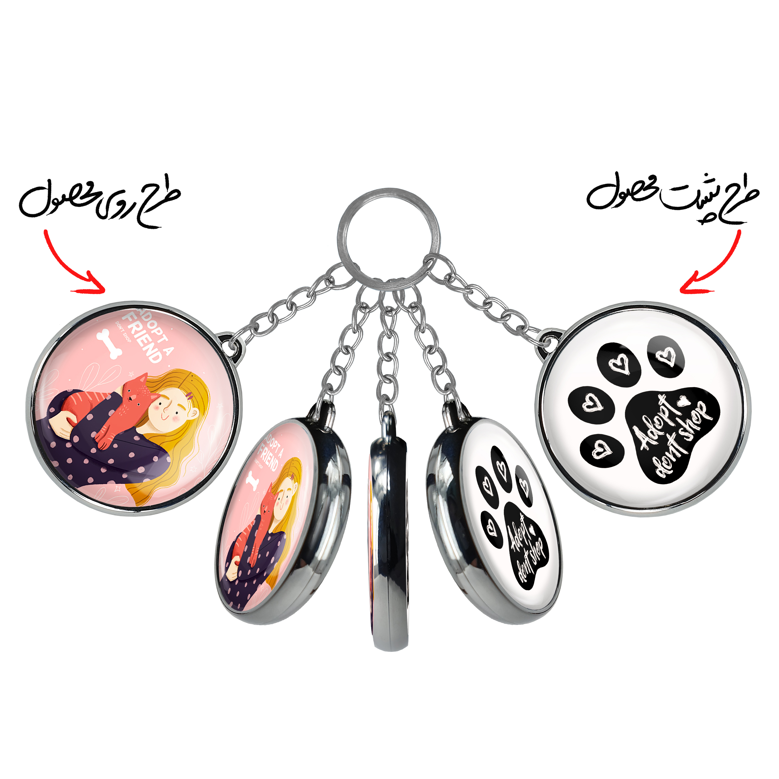جاکلیدی دوطرفه حمایت از حیواناتخندالو محصولی کاربردی و جدید است که در هر دو سمت محصول، تصویری متفاوت اما از یک موضوع چاپ شده و تفاوت اصلی آن با جاکلیدی های یک طرفه در همین است که هر دو سمت پشت و روی جاکلیدی، طرحی دیدنی و جذاب دارد.