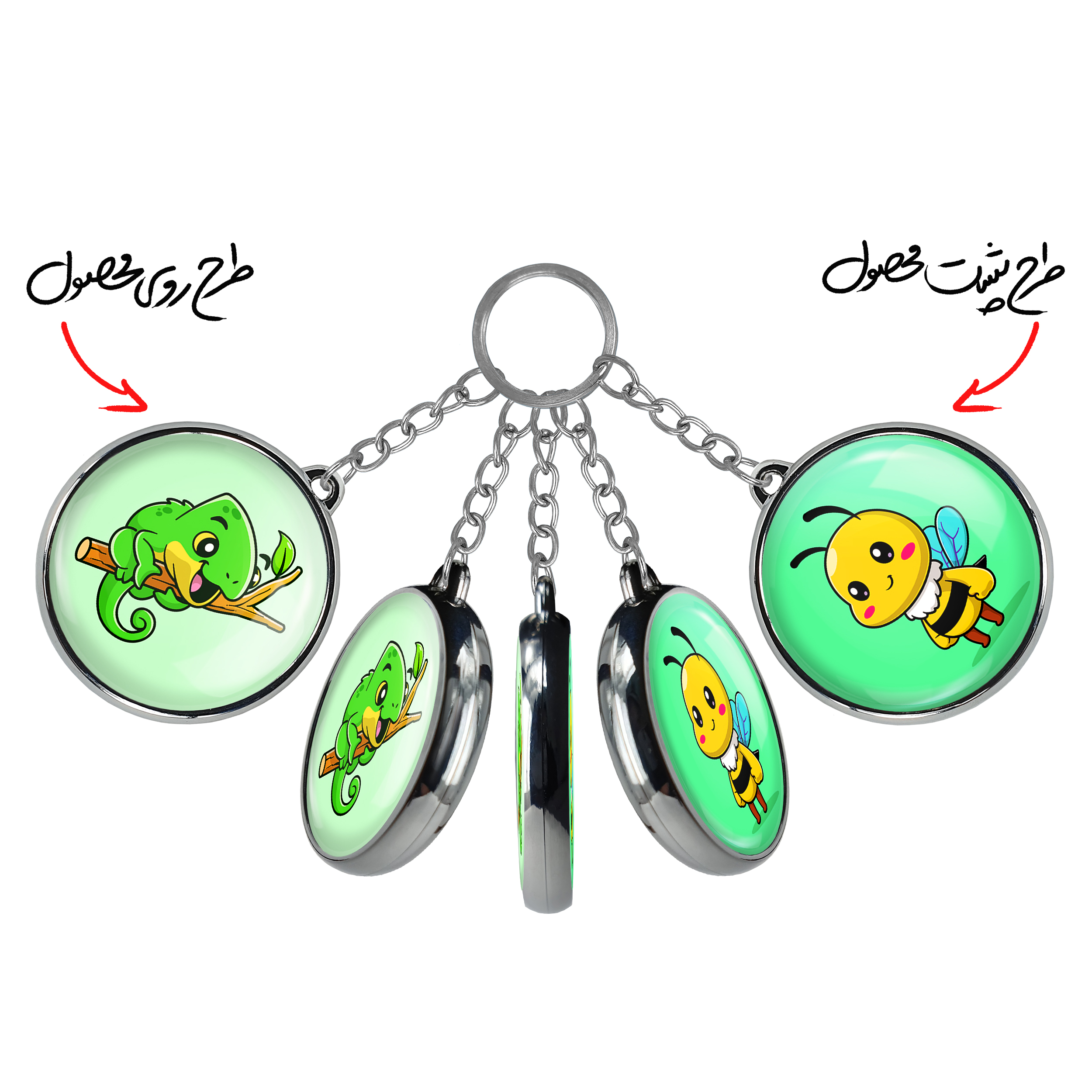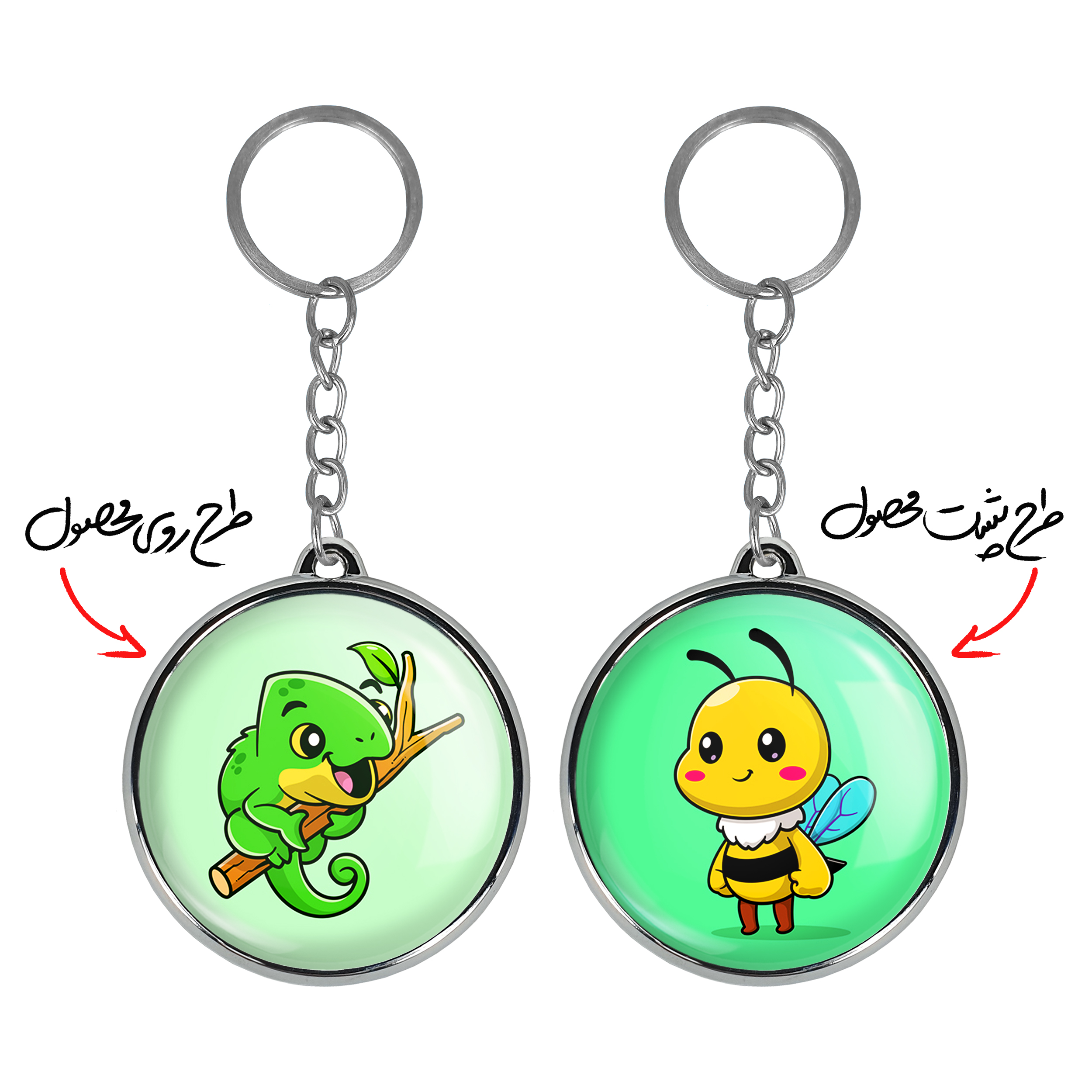 جاکلیدی دوطرفه حیوانات بامزه آفتاب پرستخندالو محصولی کاربردی و جدید است که در هر دو سمت محصول، تصویری متفاوت اما از یک موضوع چاپ شده و تفاوت اصلی آن با جاکلیدی های یک طرفه در همین است که هر دو سمت پشت و روی جاکلیدی، طرحی دیدنی و جذاب دارد. همچنین رینگ بکار برده شده برای دور طرح ها آبکاری کروم درجه یک و رنگ ثابت است و برخلاف سایر محصولات مشابه، از رنگ های متفرقه و یا سفید استفاده نشده، که این مهم، زیبایی محصول نهایی را چند برابر کرده است. جاکلیدی های دوطرفه حیوانات بامزه آفتاب پرستبا استفاده از روکش سلفون براق ضدخش تولید شده که خاصیت ضدخش بودن آن عمر مفید استفاده از جاکلیدی ها را افزایش میدهد. چاپ جاکلیدی ها با دستگاه های استاندارد و با بهترین سطح کیفیت صورت گرفته و طرح با شفافیتی مثال زدنی و با سلفون چسبی تولید شده است که باعث شده محصول نهایی بدون شکست نور دیده شود. همچنین بسته بندی جذاب و مینیمال جاکلیدی دوطرفه حیوانات بامزه آفتاب پرست، آنها را محصولی مناسب هدیه کرده است. زنجیر و حلقه بکار برده شده در جاکلیدی خندالو از نوع حلقه ضخیم و محکم بوده و حین استفاده آسیب نمی بیند.