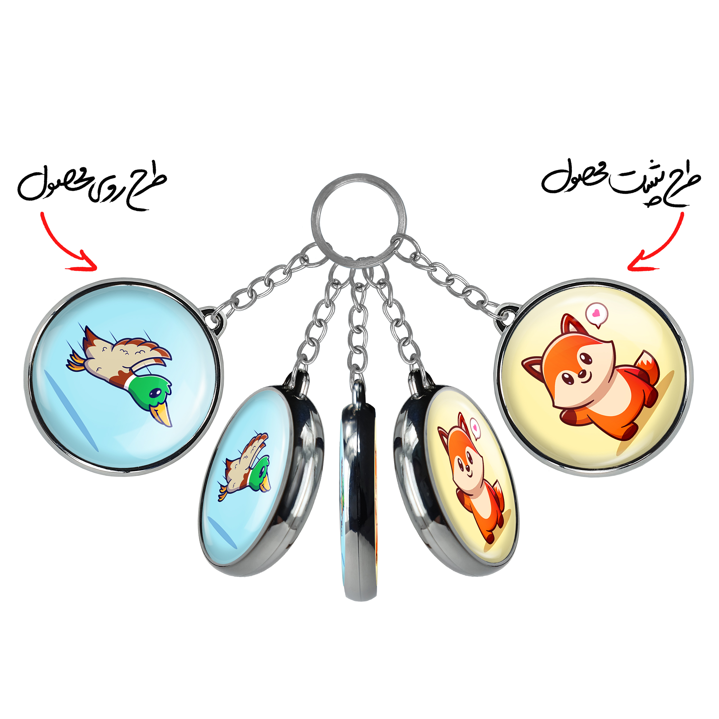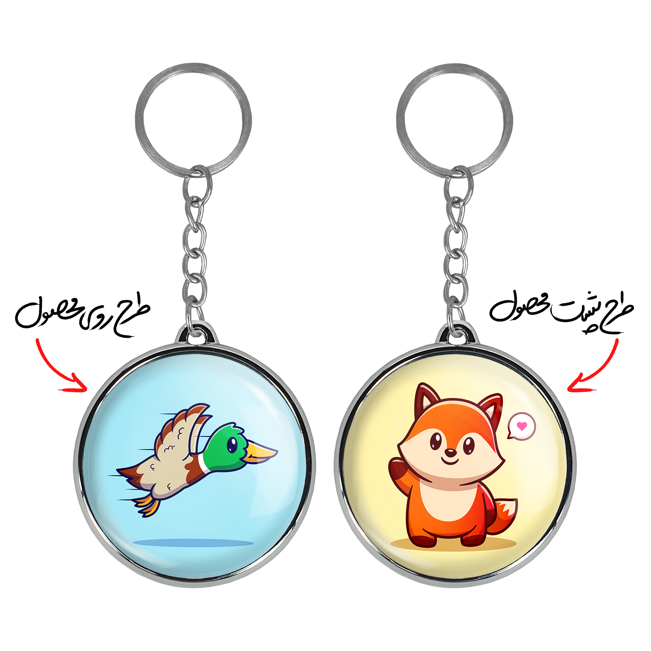جاکلیدی دوطرفه حیوانات بامزه اردکخندالو محصولی کاربردی و جدید است که در هر دو سمت محصول، تصویری متفاوت اما از یک موضوع چاپ شده و تفاوت اصلی آن با جاکلیدی های یک طرفه در همین است که هر دو سمت پشت و روی جاکلیدی، طرحی دیدنی و جذاب دارد.