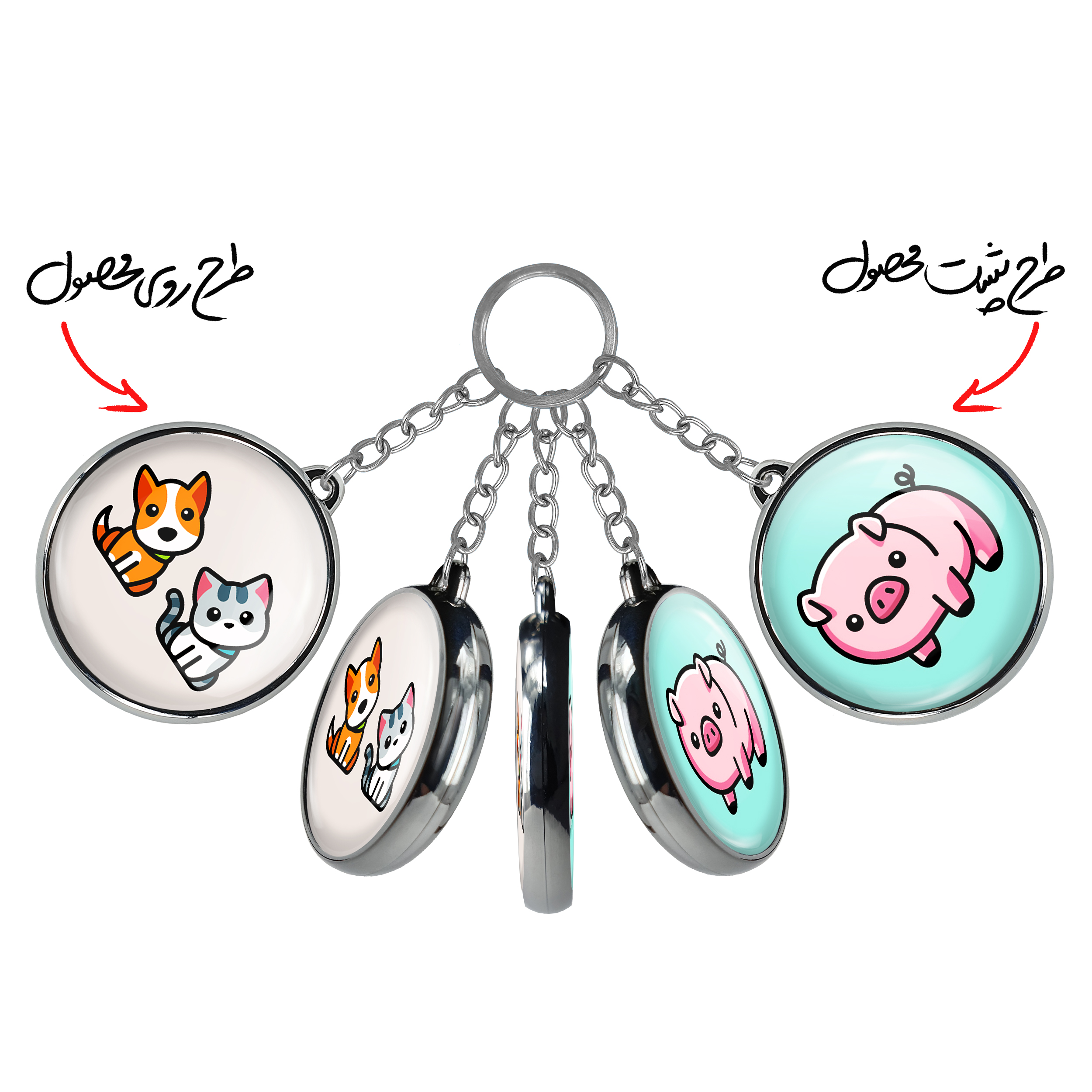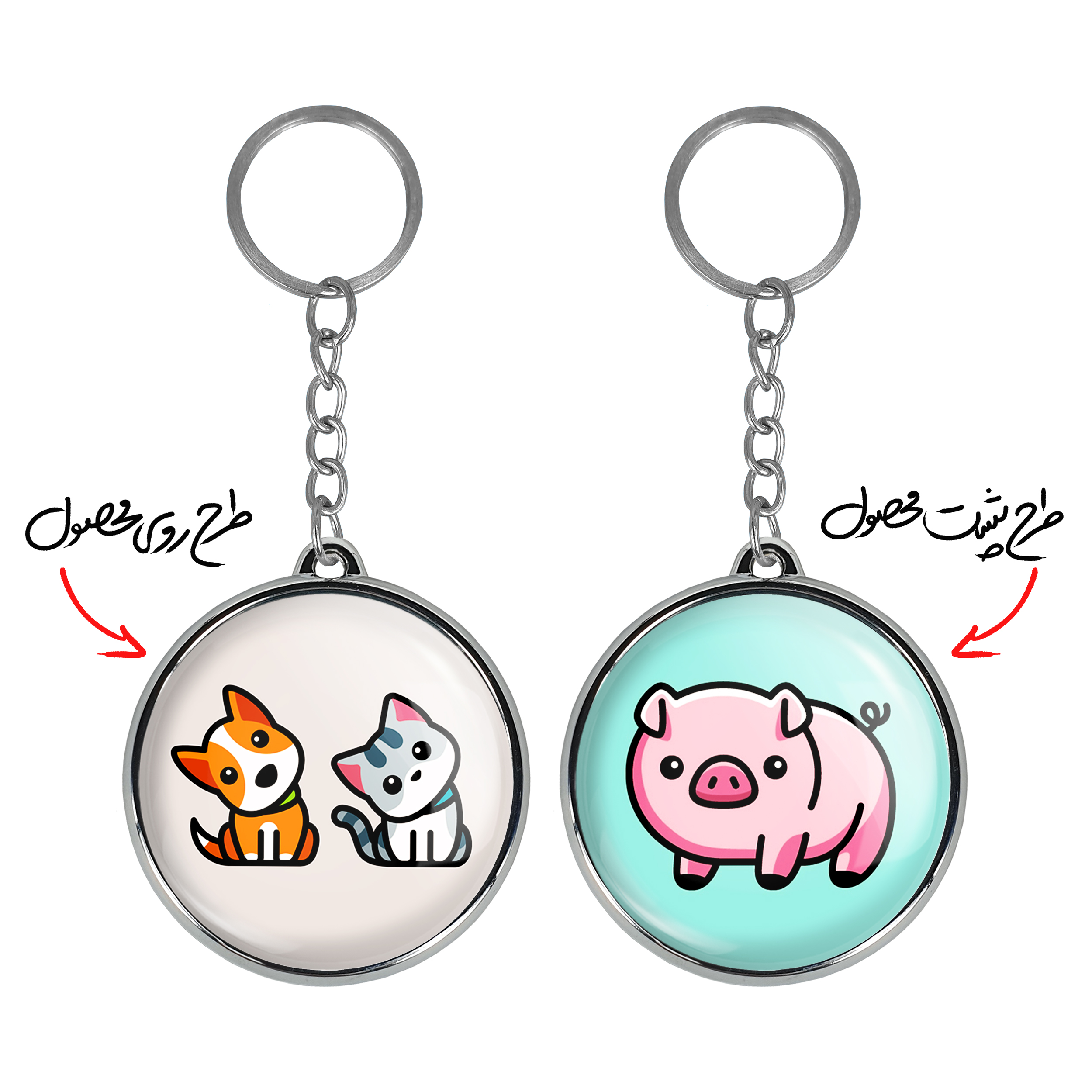 جاکلیدی دوطرفه حیوانات بامزه سگ و گربهخندالو محصولی کاربردی و جدید است که در هر دو سمت محصول، تصویری متفاوت اما از یک موضوع چاپ شده و تفاوت اصلی آن با جاکلیدی های یک طرفه در همین است که هر دو سمت پشت و روی جاکلیدی، طرحی دیدنی و جذاب دارد. همچنین رینگ بکار برده شده برای دور طرح ها آبکاری کروم درجه یک و رنگ ثابت است و برخلاف سایر محصولات مشابه، از رنگ های متفرقه و یا سفید استفاده نشده، که این مهم، زیبایی محصول نهایی را چند برابر کرده است. جاکلیدی های دوطرفه حیوانات بامزه سگ و گربهبا استفاده از روکش سلفون براق ضدخش تولید شده که خاصیت ضدخش بودن آن عمر مفید استفاده از جاکلیدی ها را افزایش میدهد. چاپ جاکلیدی ها با دستگاه های استاندارد و با بهترین سطح کیفیت صورت گرفته و طرح با شفافیتی مثال زدنی و با سلفون چسبی تولید شده است که باعث شده محصول نهایی بدون شکست نور دیده شود. همچنین بسته بندی جذاب و مینیمال جاکلیدی دوطرفه حیوانات بامزه سگ و گربه، آنها را محصولی مناسب هدیه کرده است. زنجیر و حلقه بکار برده شده در جاکلیدی خندالو از نوع حلقه ضخیم و محکم بوده و حین استفاده آسیب نمی بیند.