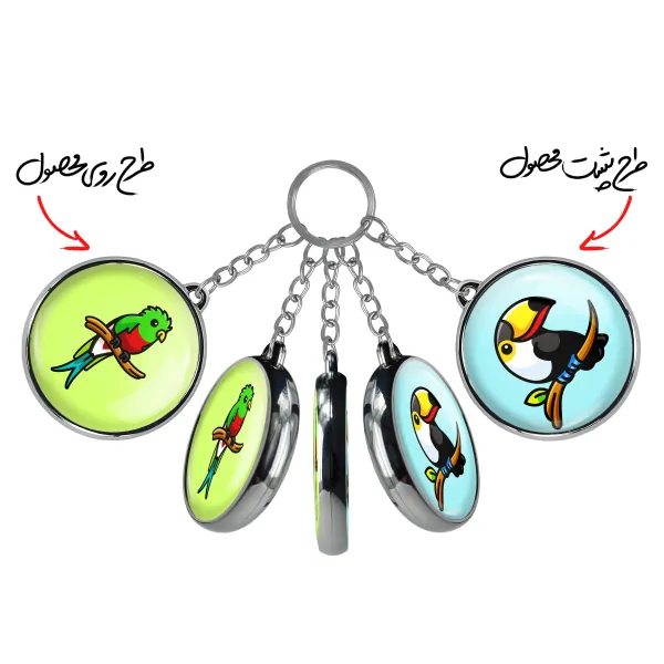 جاکلیدی دوطرفه حیوانات بامزه طوطیخندالو محصولی کاربردی و جدید است که در هر دو سمت محصول، تصویری متفاوت اما از یک موضوع چاپ شده و تفاوت اصلی آن با جاکلیدی های یک طرفه در همین است که هر دو سمت پشت و روی جاکلیدی، طرحی دیدنی و جذاب دارد. همچنین رینگ بکار برده شده برای دور طرح ها آبکاری کروم درجه یک و رنگ ثابت است و برخلاف سایر محصولات مشابه، از رنگ های متفرقه و یا سفید استفاده نشده، که این مهم، زیبایی محصول نهایی را چند برابر کرده است. جاکلیدی های دوطرفه حیوانات بامزه طوطیبا استفاده از روکش سلفون براق ضدخش تولید شده که خاصیت ضدخش بودن آن عمر مفید استفاده از جاکلیدی ها را افزایش میدهد. چاپ جاکلیدی ها با دستگاه های استاندارد و با بهترین سطح کیفیت صورت گرفته و طرح با شفافیتی مثال زدنی و با سلفون چسبی تولید شده است که باعث شده محصول نهایی بدون شکست نور دیده شود. همچنین بسته بندی جذاب و مینیمال جاکلیدی دوطرفه حیوانات بامزه طوطی، آنها را محصولی مناسب هدیه کرده است. زنجیر و حلقه بکار برده شده در جاکلیدی خندالو از نوع حلقه ضخیم و محکم بوده و حین استفاده آسیب نمی بیند.