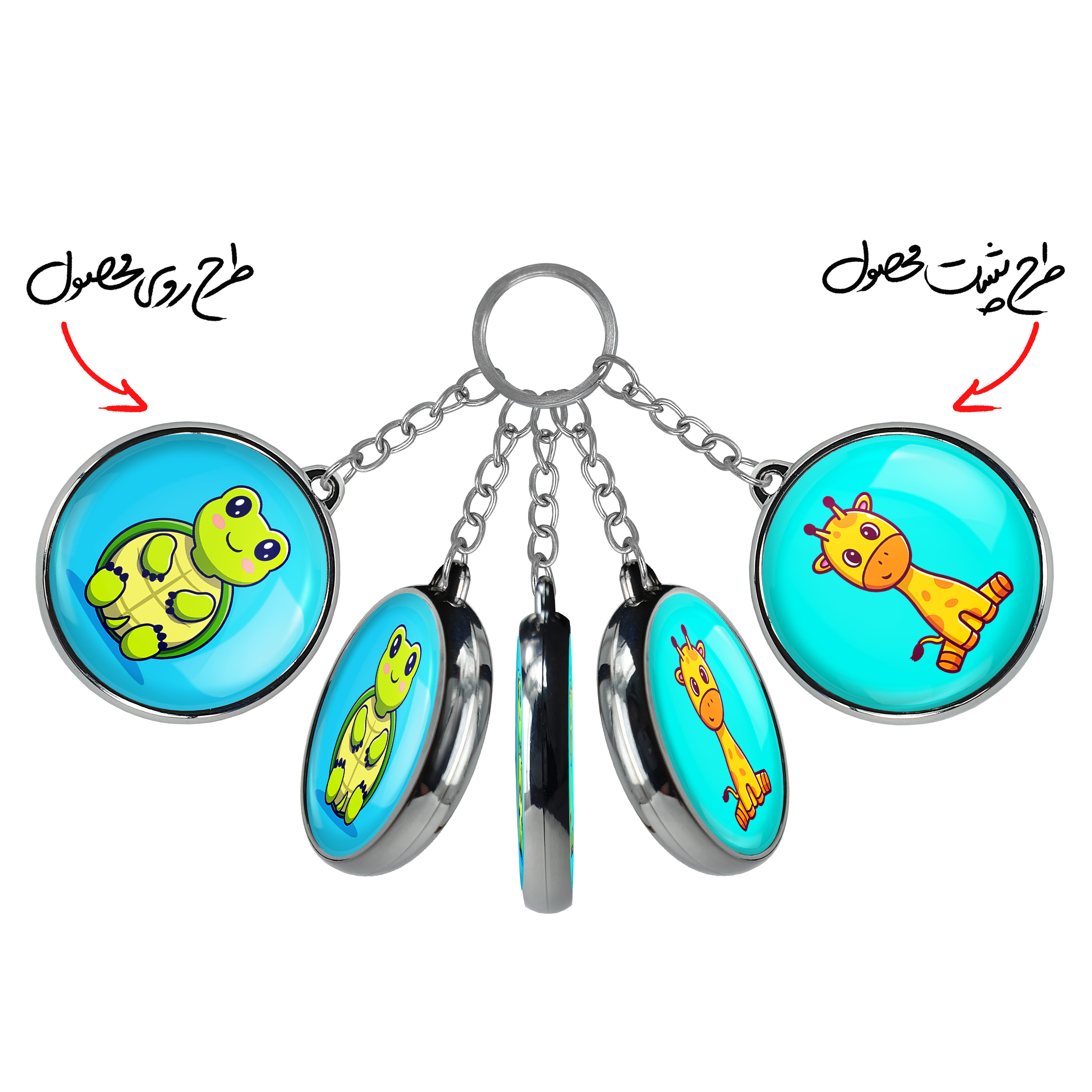 جاکلیدی دوطرفه حیوانات بامزه لاکپشتخندالو محصولی کاربردی و جدید است که در هر دو سمت محصول، تصویری متفاوت اما از یک موضوع چاپ شده و تفاوت اصلی آن با جاکلیدی های یک طرفه در همین است که هر دو سمت پشت و روی جاکلیدی، طرحی دیدنی و جذاب دارد. همچنین رینگ بکار برده شده برای دور طرح ها آبکاری کروم درجه یک و رنگ ثابت است و برخلاف سایر محصولات مشابه، از رنگ های متفرقه و یا سفید استفاده نشده، که این مهم، زیبایی محصول نهایی را چند برابر کرده است. جاکلیدی های دوطرفه حیوانات بامزه لاکپشتبا استفاده از روکش سلفون براق ضدخش تولید شده که خاصیت ضدخش بودن آن عمر مفید استفاده از جاکلیدی ها را افزایش میدهد. چاپ جاکلیدی ها با دستگاه های استاندارد و با بهترین سطح کیفیت صورت گرفته و طرح با شفافیتی مثال زدنی و با سلفون چسبی تولید شده است که باعث شده محصول نهایی بدون شکست نور دیده شود. همچنین بسته بندی جذاب و مینیمال جاکلیدی دوطرفه حیوانات بامزه لاکپشت، آنها را محصولی مناسب هدیه کرده است. زنجیر و حلقه بکار برده شده در جاکلیدی خندالو از نوع حلقه ضخیم و محکم بوده و حین استفاده آسیب نمی بیند.
