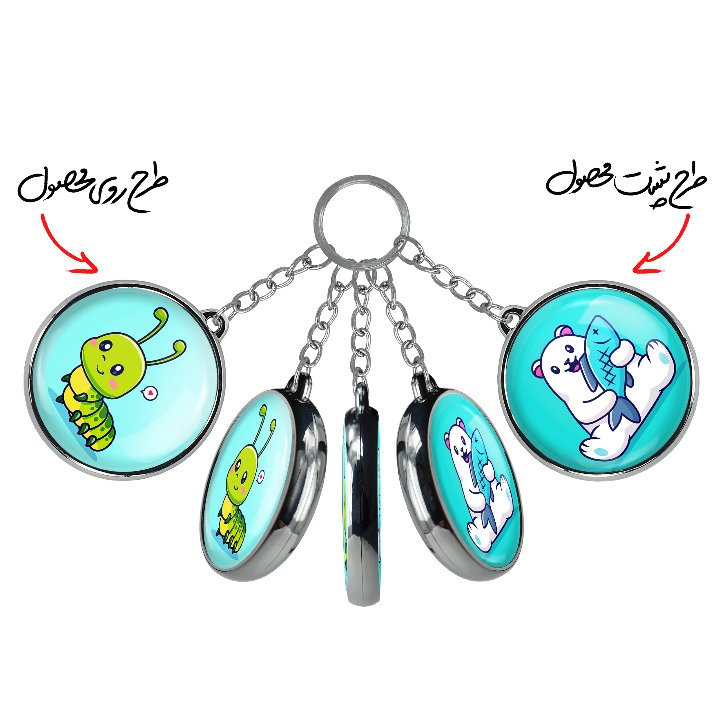 جاکلیدی دوطرفه حیوانات بامزه هزارپاخندالو محصولی کاربردی و جدید است که در هر دو سمت محصول، تصویری متفاوت اما از یک موضوع چاپ شده و تفاوت اصلی آن با جاکلیدی های یک طرفه در همین است که هر دو سمت پشت و روی جاکلیدی، طرحی دیدنی و جذاب دارد. همچنین رینگ بکار برده شده برای دور طرح ها آبکاری کروم درجه یک و رنگ ثابت است و برخلاف سایر محصولات مشابه، از رنگ های متفرقه و یا سفید استفاده نشده، که این مهم، زیبایی محصول نهایی را چند برابر کرده است. جاکلیدی های دوطرفه حیوانات بامزه هزارپابا استفاده از روکش سلفون براق ضدخش تولید شده که خاصیت ضدخش بودن آن عمر مفید استفاده از جاکلیدی ها را افزایش میدهد. چاپ جاکلیدی ها با دستگاه های استاندارد و با بهترین سطح کیفیت صورت گرفته و طرح با شفافیتی مثال زدنی و با سلفون چسبی تولید شده است که باعث شده محصول نهایی بدون شکست نور دیده شود. همچنین بسته بندی جذاب و مینیمال جاکلیدی دوطرفه حیوانات بامزه هزارپا، آنها را محصولی مناسب هدیه کرده است. زنجیر و حلقه بکار برده شده در جاکلیدی خندالو از نوع حلقه ضخیم و محکم بوده و حین استفاده آسیب نمی بیند.