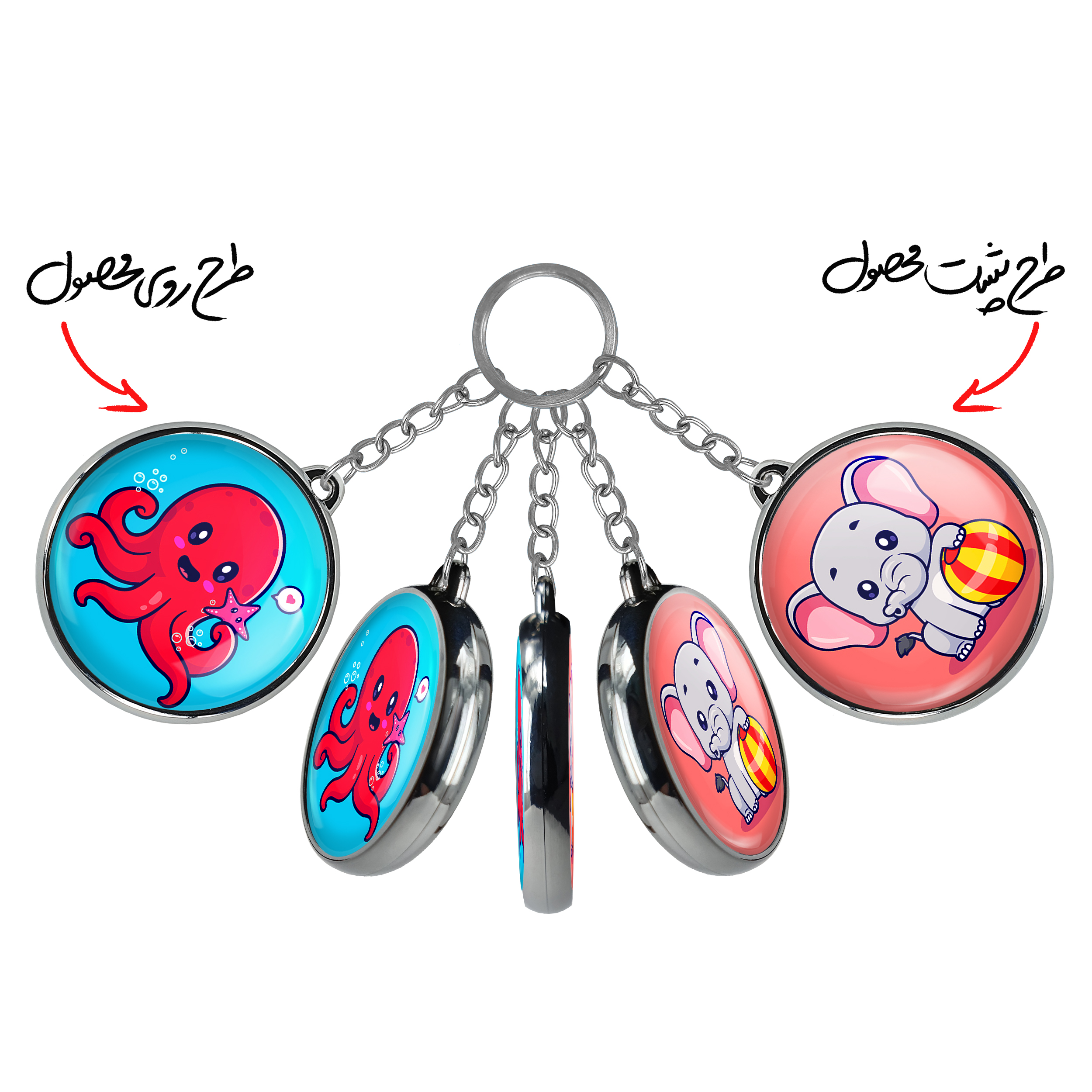 جاکلیدی دوطرفه حیوانات بامزه هشت پاخندالو محصولی کاربردی و جدید است که در هر دو سمت محصول، تصویری متفاوت اما از یک موضوع چاپ شده و تفاوت اصلی آن با جاکلیدی های یک طرفه در همین است که هر دو سمت پشت و روی جاکلیدی، طرحی دیدنی و جذاب دارد. همچنین رینگ بکار برده شده برای دور طرح ها آبکاری کروم درجه یک و رنگ ثابت است و برخلاف سایر محصولات مشابه، از رنگ های متفرقه و یا سفید استفاده نشده، که این مهم، زیبایی محصول نهایی را چند برابر کرده است. جاکلیدی های دوطرفه حیوانات بامزه هشت پابا استفاده از روکش سلفون براق ضدخش تولید شده که خاصیت ضدخش بودن آن عمر مفید استفاده از جاکلیدی ها را افزایش میدهد. چاپ جاکلیدی ها با دستگاه های استاندارد و با بهترین سطح کیفیت صورت گرفته و طرح با شفافیتی مثال زدنی و با سلفون چسبی تولید شده است که باعث شده محصول نهایی بدون شکست نور دیده شود. همچنین بسته بندی جذاب و مینیمال جاکلیدی دوطرفه حیوانات بامزه هشت پا، آنها را محصولی مناسب هدیه کرده است. زنجیر و حلقه بکار برده شده در جاکلیدی خندالو از نوع حلقه ضخیم و محکم بوده و حین استفاده آسیب نمی بیند.