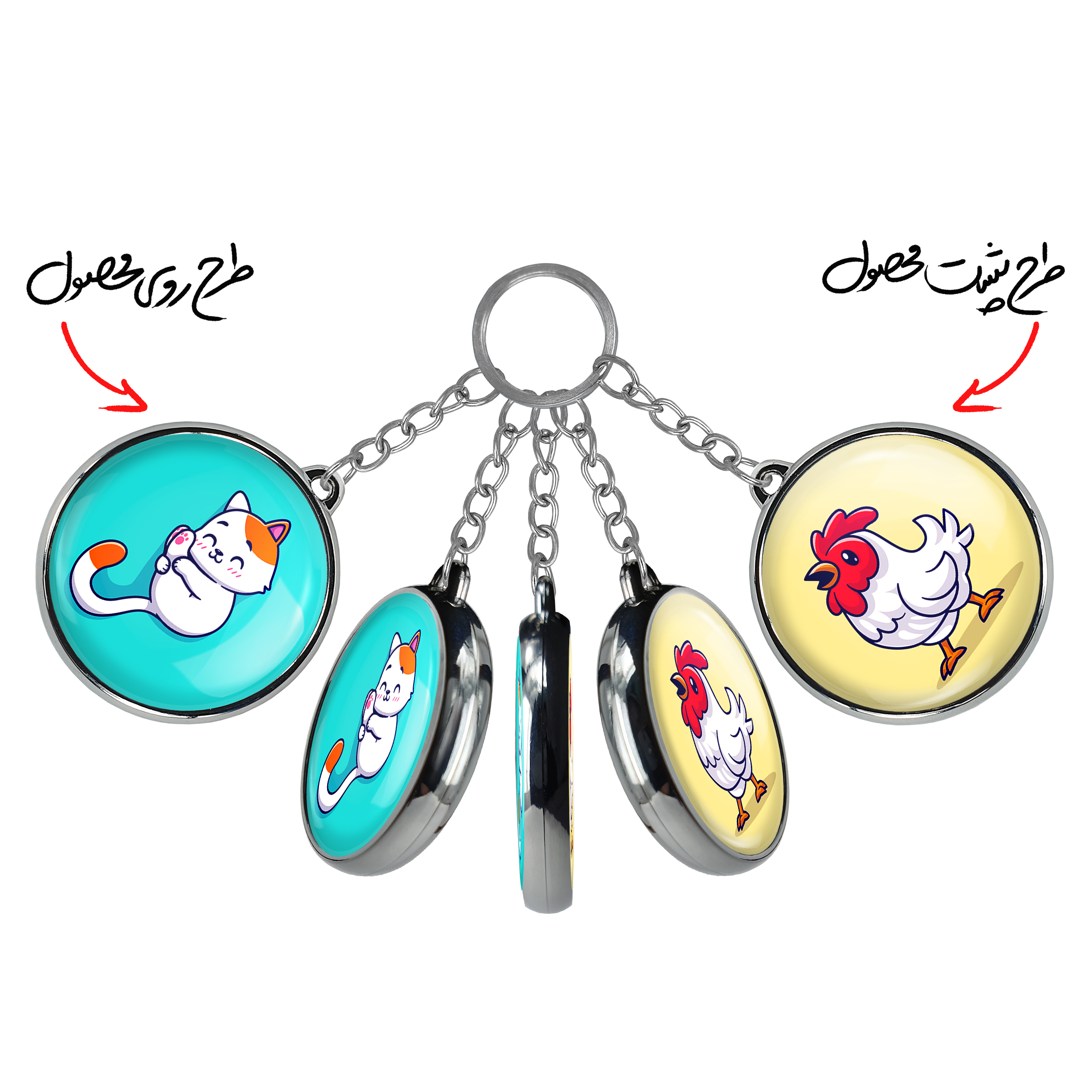 جاکلیدی دوطرفه حیوانات بامزه گربهخندالو محصولی کاربردی و جدید است که در هر دو سمت محصول، تصویری متفاوت اما از یک موضوع چاپ شده و تفاوت اصلی آن با جاکلیدی های یک طرفه در همین است که هر دو سمت پشت و روی جاکلیدی، طرحی دیدنی و جذاب دارد. همچنین رینگ بکار برده شده برای دور طرح ها آبکاری کروم درجه یک و رنگ ثابت است و برخلاف سایر محصولات مشابه، از رنگ های متفرقه و یا سفید استفاده نشده، که این مهم، زیبایی محصول نهایی را چند برابر کرده است. جاکلیدی های دوطرفه حیوانات بامزه گربهبا استفاده از روکش سلفون براق ضدخش تولید شده که خاصیت ضدخش بودن آن عمر مفید استفاده از جاکلیدی ها را افزایش میدهد. چاپ جاکلیدی ها با دستگاه های استاندارد و با بهترین سطح کیفیت صورت گرفته و طرح با شفافیتی مثال زدنی و با سلفون چسبی تولید شده است که باعث شده محصول نهایی بدون شکست نور دیده شود. همچنین بسته بندی جذاب و مینیمال جاکلیدی دوطرفه حیوانات بامزه گربه، آنها را محصولی مناسب هدیه کرده است. زنجیر و حلقه بکار برده شده در جاکلیدی خندالو از نوع حلقه ضخیم و محکم بوده و حین استفاده آسیب نمی بیند.